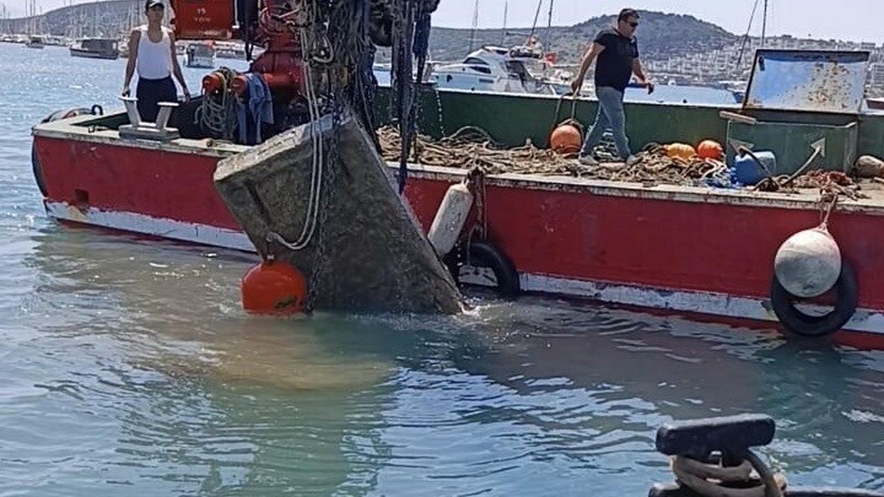 Fırat AKAY/BODRUM (Muğla), (DHA)-MUĞLA'nın Bodrum ilçesi Gümbet Koyu'nda yapılan deniz dibi temizliğinde başta tonoz olmak üzere toplam 130 ton atık çıkarıldı.