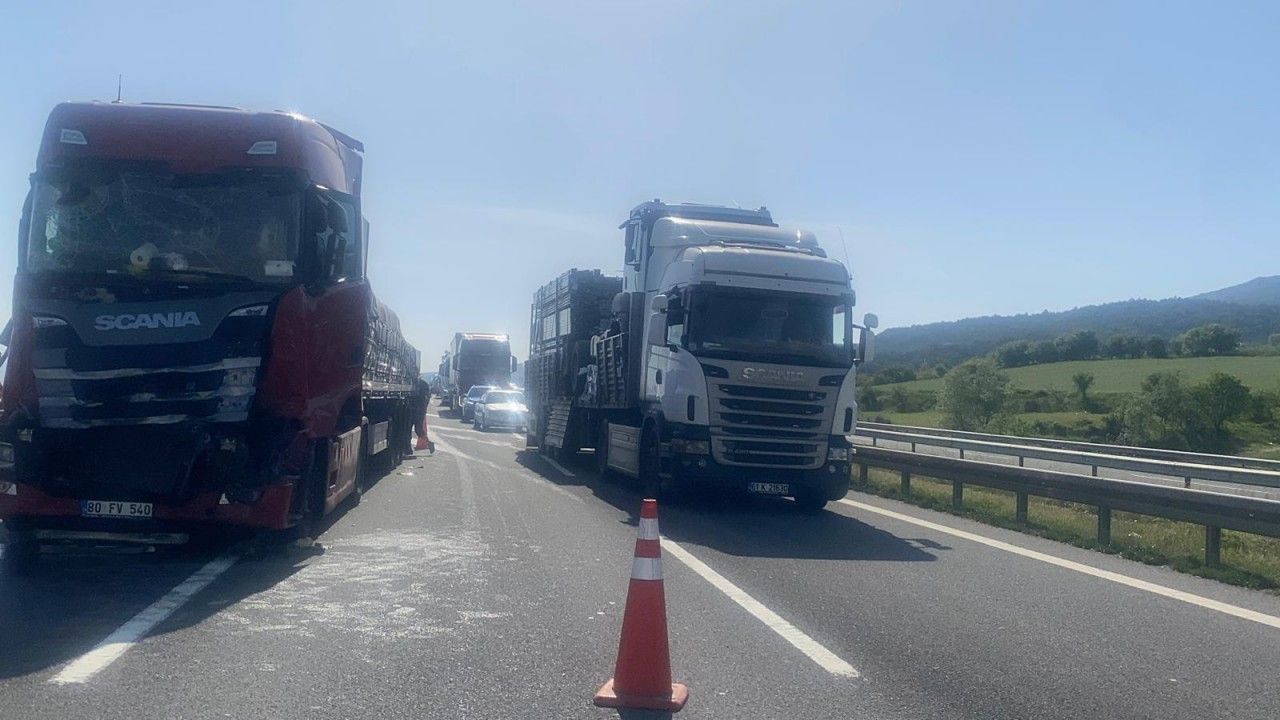 Kaza, saat 16.00 sıralarında Anadolu Otoyolu’nun Bolu geçişi Ankara istikametinde meydana geldi. Arıza nedeniyle emniyet şeridinde duran Davit Partenaze idaresindeki BM 928 MB plakalı TIR'a, arkasından gelen Mehmet K. yönetimindeki 51 ACR 259 plakalı TIR çarparken, dorsesindeki konteyner da yola devrildi. Daha sonra arkadan gelen sürücüsünün ismi öğrenilemeyen 99 JG 902 plakalı TIR ve Kemal D. idaresindeki 80 FV 540 plakalı TIR da kazaya karıştı. Zincirleme kazada Kemal D. ve yanında bulunan Ahmet D. yaralandı. Kazayı görenlerin ihbarıyla bölgeye sağlık ve jandarma ekipleri sevk edildi. Yaralılar, sağlık ekibinin ilk müdahalesi sonrası ambulanslarla Bolu Abant İzzet Baysal Üniversitesi Eğitim ve Araştırma Hastanesi'ne kaldırıldı. Devrilen konteyner nedeniyle yol yaklaşık yarım saat trafiğe kapalı kalırken, uzun araç kuyrukları oluştu. Ekiplerin yarım saat süren çalışmasıyla yol yeniden açıldı. Kazayla ilgili inceleme başlatıldı. (DHA)