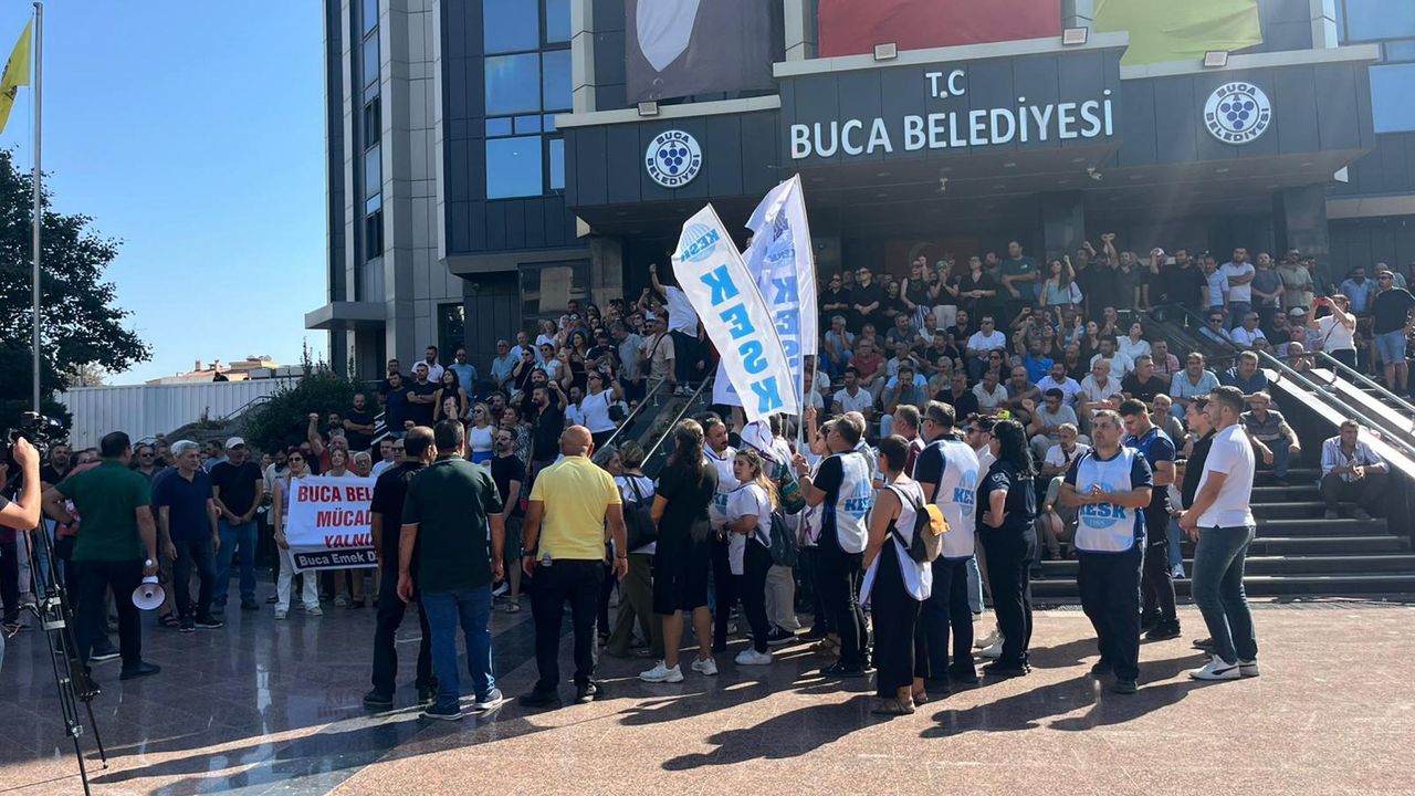 Buca Belediyesi binasını 'işgal' eden işçilere, belediyede çalışan memurlar da hem kendi yan hakları hem de işçilere destek için iş bırakma eylemine katıldı. Ayrıca, bugün Kamu Emekçileri Sendikaları Konfederasyonu (KESK) ve Buca Emek Demokrasi Platformu işçilere destek için belediye binası önüne geldi.