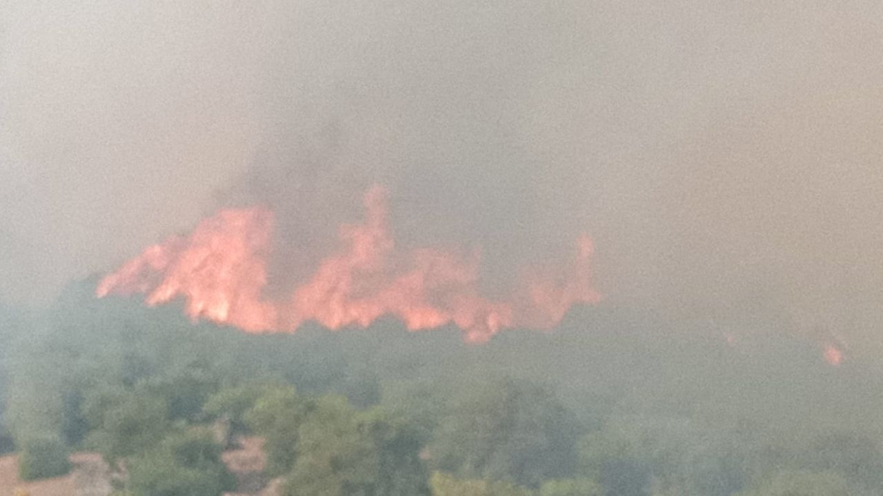 Bursa’nın Büyükorhan ilçesine bağlı kırsal Düğüncüler Mahallesi ile Balıkesir’in Dursunbey ilçesine bağlı kırsal Bayıryüzügüney Mahallesi arasında orman yangını çıktı. İhbar üzerine Bursa ve Balıkesir Osman Bölge Müdürlüğü ekipleri sevk edildi. Rüzgarın etkisiyle büyüyen yangın, Dursunbey ilçesine bağlı Adaören Mahallesi’ne yaklaştı. Alevlerin mahalleye ulaşmasını engellemek için ekipler havadan ve karadan müdahale ediyor. (DHA)