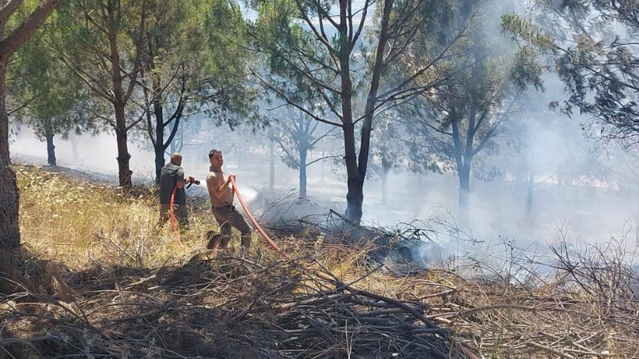 Bursa'da Nilüfer ilçesi Çatalağıl Mahallesi'ndeki ağaçlık alanda saat 11.00 sıralarında çıkan yangın, 1 saatte kontrol altına alındı. Bölgedeki soğutma çalışmaları sürüyor. (DHA)