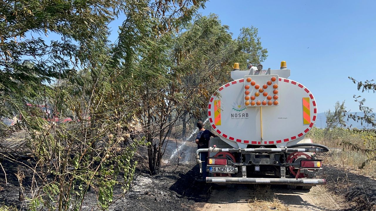 Nilüfer ilçesi Minareliçavuş Mahallesi Organize Sanayi Bölgesi’nde, saat 14.00 sıralarında, yangın çıktı. Tarlada yakılan anızlardan yükselen alevler, rüzgarın da etkisiyle kısa sürede büyüyüp bitişikteki zeytinliğe sıçradı. İhbarla bölgeye itfaiye ve polis ekipleri sevk edildi. Polis ekipleri çevrede güvenlik önlemi aldı. İtfaiyecilere çiftçiler de traktörleriyle destek verdi. Yangın, 1 saatte kontrol altına alınıp söndürüldü. (DHA)