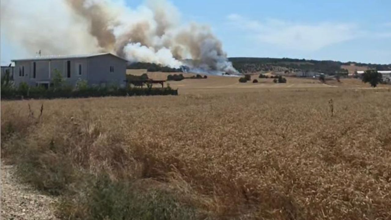 Nilüfer ilçesi Hasanaağa Mahallesi’ndeki buğday tarlasında saat 15.00 sıralarında çıkan yangın, rüzgarın da etkisiyle kısa sürede büyüdü. Alevler çevredeki ağaçlık alana sıçrarken, ihbarla bölgeye itfaiye ekipleri sevk edildi. Bursa Büyükşehir Belediyesi İtfaiye Daire Başkanlığı ekipleri ile çiftçilerin yangını kontrol altına alma çalışmaları devam ediyor. (DHA)