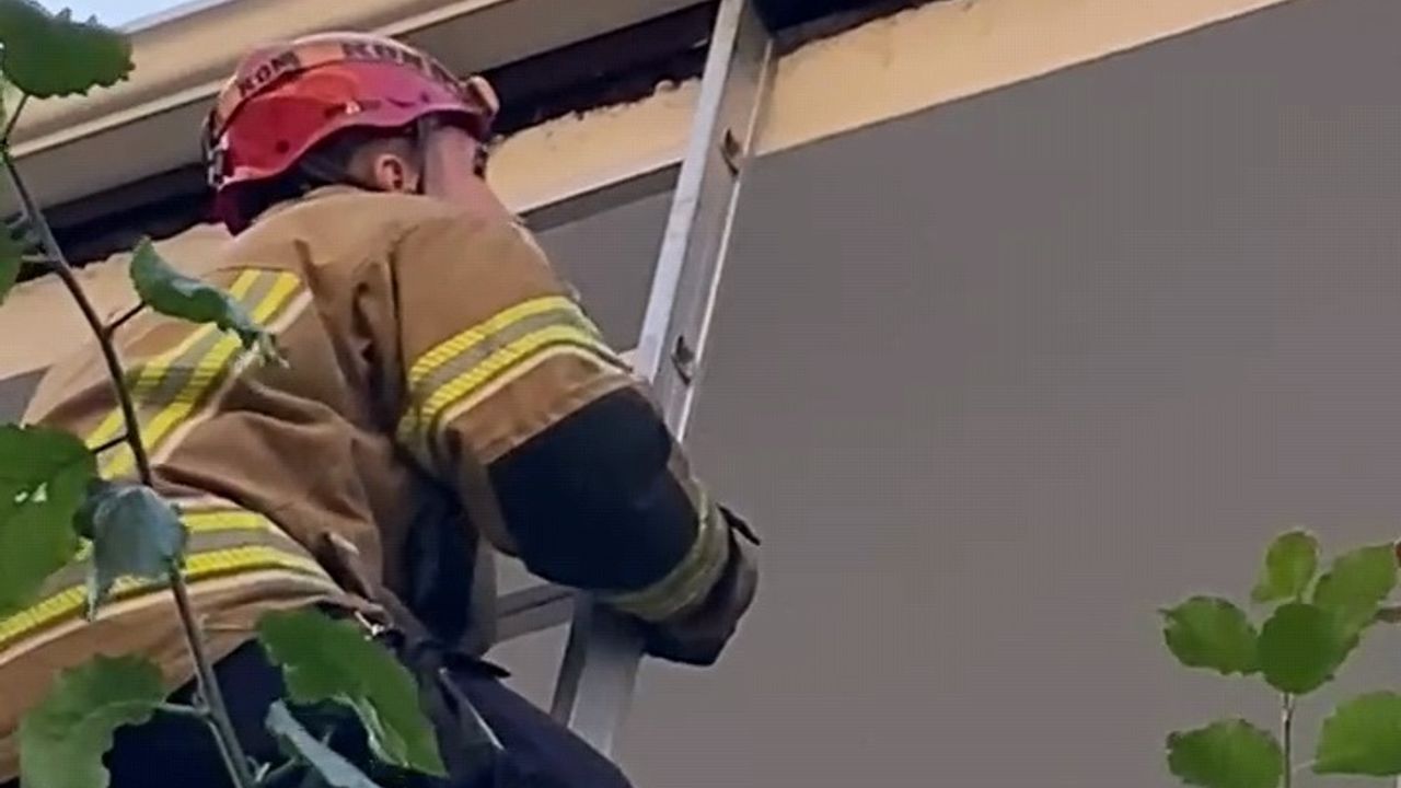Olay, Fatih Mahallesi Özbey Sokak'taki 2 katlı bir evin çatısında meydana geldi. Ev sakinleri, çatıdaki yağmur suyu kanalından kuş sesi geldiğini fark ederek durumu itfaiyeye bildirdi. Adrese gelen itfaiyesi ekipleri, çatıya çıkarak yağmur suyu tahliye kanalını kontrol etti. Yapılan incelemede, bir ebabil kuşunun saçağa sıkıştığı belirlendi. Ekiplerin çalışmasının ardından kuş bulunduğu yerden zarar görmeden çıkarıldı. Kurtarılan ebabil kuşu yeniden doğaya salınırken, mahalle sakinleri duyarlı müdahalesi nedeniyle itfaiye ekiplerine teşekkür etti. (DHA)