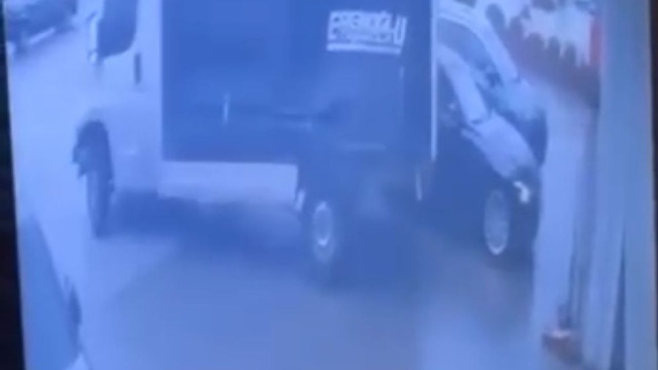 Bursa'da bir kamyon fırtınanın etkisiyle sürüklendi. O anlar, iş yerinin güvenlik kamerasıyla görüntülendi. (DHA)