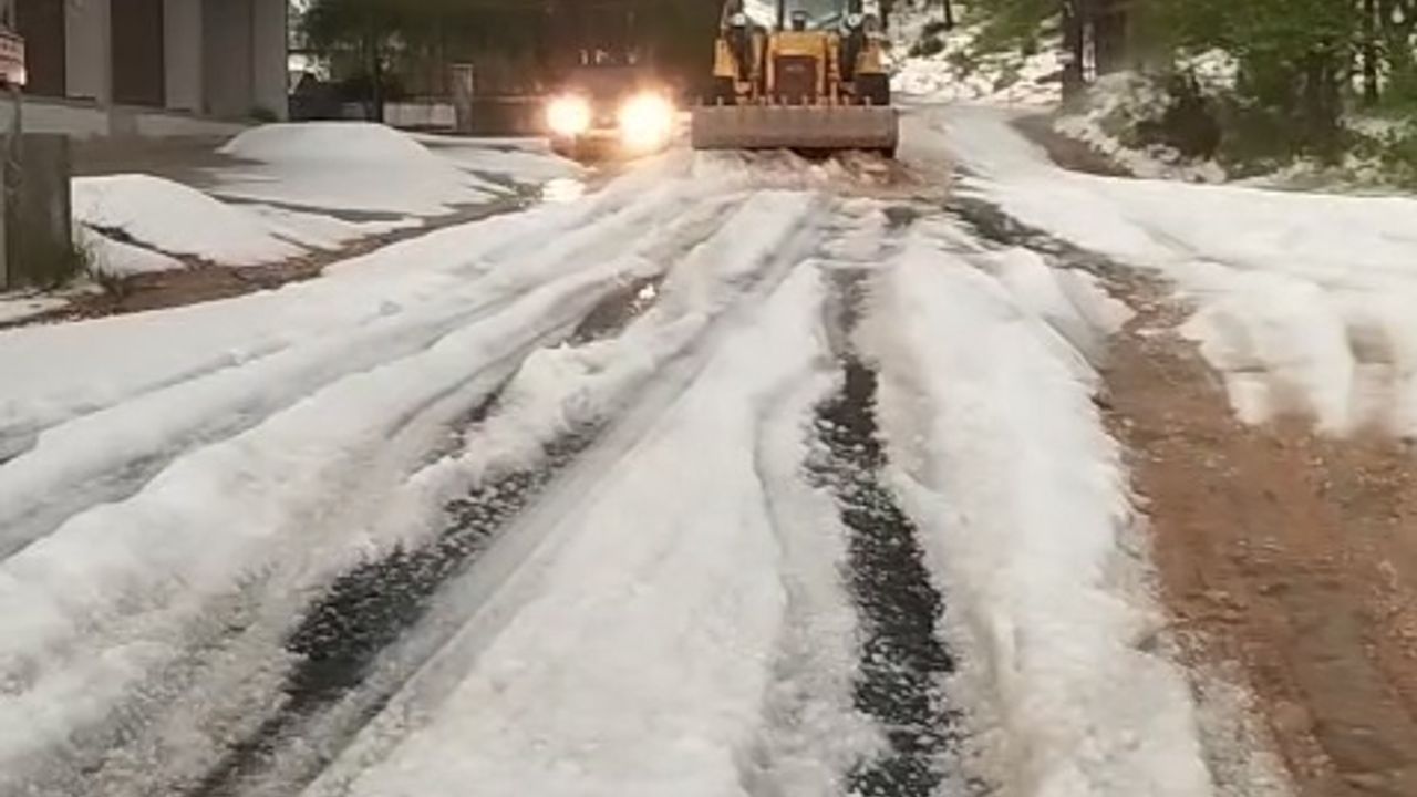 Okan ÇALIŞKAN/ ÇAMLIYAYLA (Mersin), (DHA)- MERSİN'in Tarsus ilçesinde etkili olan dolu nedeniyle birçok noktada yollar trafiğe kapandı.