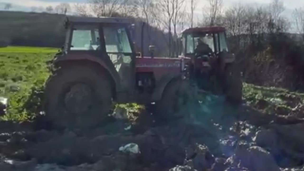 Olay, dün Kaynarca ilçesi Şeyhtimarı Mahallesi'nde meydana geldi. Semih Kaya, tarlasından hasat ettiği lahanaları traktörüne bağlı römorka yükleyip pazara götürmek üzere yola çıktı. Yağışlı havanın etkisiyle yumuşayan zeminde traktör ve lahana yüklü römork çamura saplandı. Durumu fark eden çevredeki çiftçiler Kaya'nın yardımına koştu. Ancak römorku kurtarmak için bölgeye gelen 2 traktör de çamura battı. Lahanalar farklı bir araca yüklenirken, çamura saplanan traktör ve römorkun çıkarılması için çalışma başlatıldı. (DHA)