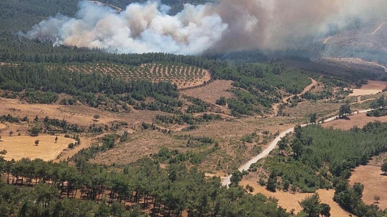 Çanakkale'nin merkeze bağlı Denizgöründü köyünde çıkan orman yangınına havadan ve karadan müdahale sürüyor. Çanakkale Valisi Ömer Toraman, sosyal medya hesabından yaptığı açıklamada, "Çanakkale merkez Denizgöründü köyü kırsalında çıkan yangına; 6 uçak, 5 helikopter ile havadan, 35 arazöz ile karadan müdahale ediliyor" dedi. (DHA)