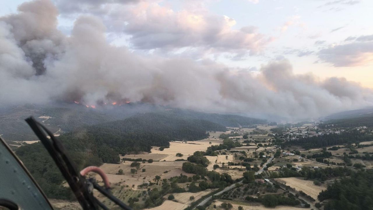 Nazif Cemhan ŞEN/ÇANAKKALE, (DHA)- ÇANAKKALE'nin Gelibolu ilçesinde dün çıkan ve 5 köyün tedbir amacıyla boşaltıldığı orman yangını sürüyor. Alevlere havadan ve karadan müdahale devam ediyor.