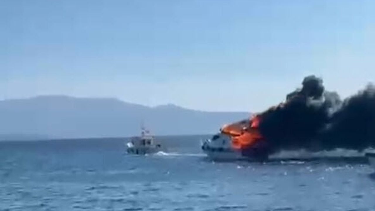 İbrahim AYRAL/ÇEŞME (İzmir), (DHA)- İZMİR'in Çeşme ilçesinde, marinada bağlı bulunan motoryatta yangın çıktı. Motoryat söndürme çalışmaları sırasında kontrollü olarak batırıldı. Cep telefonuyla da kaydedilen yangına ilişkin inceleme başlatıldı.