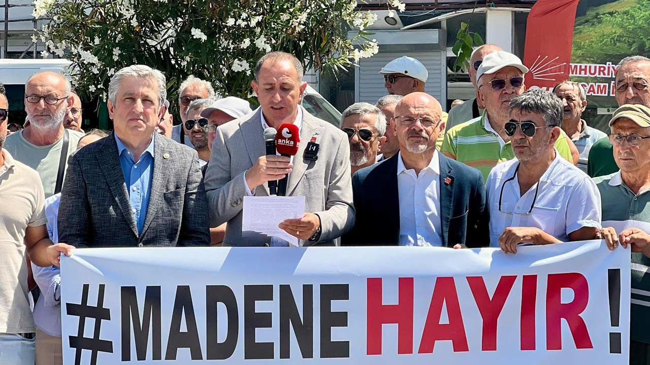 CP İl Başkanı Mehmet Özdağ, CHP Samsun Milletvekili Murat Çan, Yakakent İlçe Başkanı Akif Buharalı ve Çevre Platformu Sözcüsü Adnan Korkmaz ile birlikte, 'Doğamızı ve geleceğimizi korumak için Madene hayır' açıklamasına katıldı.