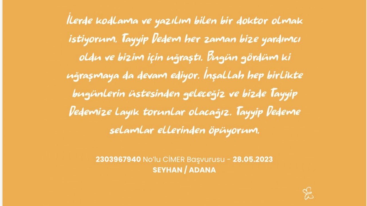 CİMER aracılığıyla gönderilen çoğu başvuru, somut karşılık buldu. İstanbul'da yaşayan bir çocuğun, çok sevdiği oyuncağının zarar görmesi üzerine yaşadığı üzüntüyü, 'Onu çok seviyordum, aynısını bulamadık' sözleriyle yaptığı başvuru üzerine aynı oyuncak kendisine ulaştırıldı. Down sendromlu Melik'in polislerle doğum günü kutlama hayali gerçekleştirildi. Talasemi hastası bir gencin özel harekat polisi olma hayali, temsili görevle gerçeğe dönüştü. Gaziantep'te yaşayan ve asker olmayı hayal eden bir öğrencinin maddi imkansızlık nedeniyle katılamadığı TEKNOFEST için destek talebi içeren başvurusu üzerine öğrencinin ulaşımı sağlanarak festivale katılımı sağlandı.