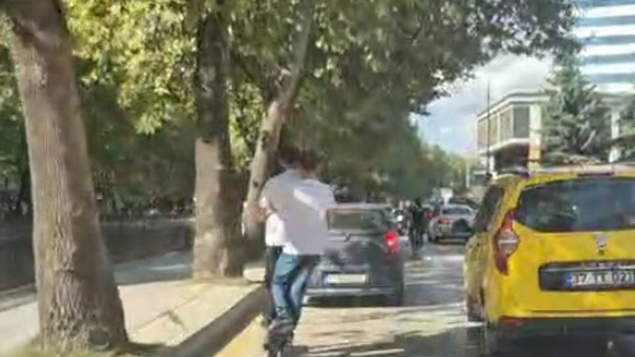 Görüntüler, Kastamonu’nun merkez ilçesi Cumhuriyet Caddesi üzerinde öğle saatlerinde kaydedildi. Üzerinde hiçbir güvenlik ekipmanı bulunmadan 2 skuterı arka arkaya kullanan çocukların tehlikeli yolculuğu cep telefonu kamerasıyla kaydedildi. Görüntülerde, skuterlerden birine iki kişinin bindiği, araçların arasında ilerleyen çocukların tehlikeli yolculuğu yer aldı. (DHA)