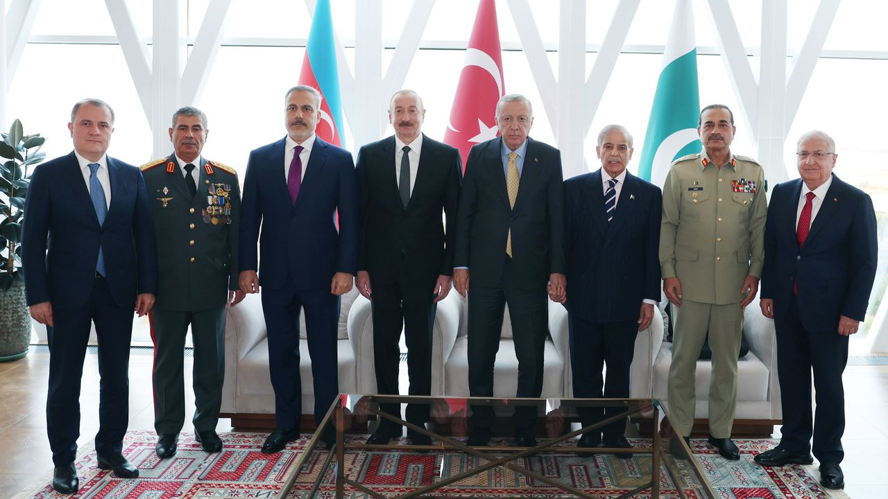 - Cumhurbaşkanı Erdoğan'ın, Azerbaycan Cumhurbaşkanı Aliyev ve Pakistan Başbakanı Şerif ile görüşmesinden detay görüntüler.