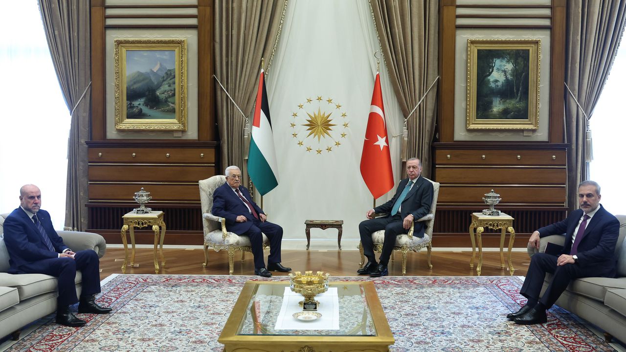 ANKARA, (DHA)- CUMHURBAŞKANI Recep Tayyip Erdoğan, Filistin Devlet Başkanı Mahmud Abbas ile Cumhurbaşkanlığı Külliyesi'nde bir araya geldi.