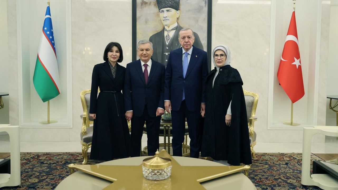 Cumhurbaşkanı Erdoğan, Türkiye'yi ziyaret eden Özbekistan Cumhurbaşkanı Şevket Mirziyoyev'i Esenboğa Havalimanı'nda karşıladı. Cumhurbaşkanı Erdoğan'a, eşi Emine Erdoğan, Cumhurbaşkanı Yardımcısı Cevdet Yılmaz ve diğer ilgililer eşlik etti. Özbekistan Cumhurbaşkanı Mirziyoyev, Muhafız Alayı Tören Kıtası'nı 'Merhaba asker' diyerek selamladı. Cumhurbaşkanı Erdoğan, konuğu Mirziyoyev ile Büyük Şeref Salonu'nda hatıra fotoğrafı çektirdi.