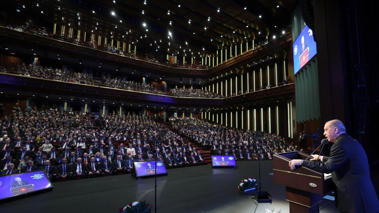 Cumhurbaşkanı Erdoğan, Türkiye'nin enerjisini çoğaltmak için gece gündüz çalıştıklarını dile getirerek, "Dikkat ederseniz bütün bu rekorların, gelişmelerin, geleceğe odaklanan vizyon projelerinin hiçbiri muhalefetin gündeminde yer almıyor. Ekonomik büyümeymiş, yatırımmış, dış politikaymış, enerji hamleleriymiş; bakın üzülerek söylüyorum, bunların hiçbirini takip etmiyorlar, hiçbiriyle ilgilenmiyorlar. Sadece yolsuzluk iddialarına değil, küresel ölçekte yaşanan gelişmelere de gözlerini kapatmışlar. Daha doğrusu gözlerine bant çekmişler. Gözleri var ama görmüyorlar. Kulakları var ama duymuyorlar. Gerçekleri bal gibi bildikleri halde maalesef bunu dillendirmeye cesaret edemiyorlar. Kafasını kuma gömerek görünmez olduğunu zannedenlere bir an önce kaçtıkları hakikatle yüzleşmelerini tavsiye ediyoruz. Onlar enerjilerini boşa harcarken biz şu an yaptığımız gibi tüm enerjimizi Türkiye Yüzyılı'nın inşasına sarf etmiş durumdayız. Sahte ve saçma tartışmalarla ülkemizin enerjisini tüketmeye çalışanlara inat, Türkiye'nin enerjisini çoğaltmak için gece gündüz çalışıyoruz. Hakaretle, tehditle, sorumsuz siyasi söylemlerle değil, burada olduğu gibi eserlerimizle konuşuyoruz, yatırımlarımızla, projelerimizle konuşuyoruz. Türkiye'nin hızını yavaşlatan kutuplaştırma siyasetinin bunu körükleyenler başta olmak üzere hiç kimseye bir faydasının olmadığı açıktır. Bugün ülkemizin en büyük ihtiyacı laf yarıştırmak değil hizmet ve eserleri yarıştırmaktır" ifadelerini kullandı.