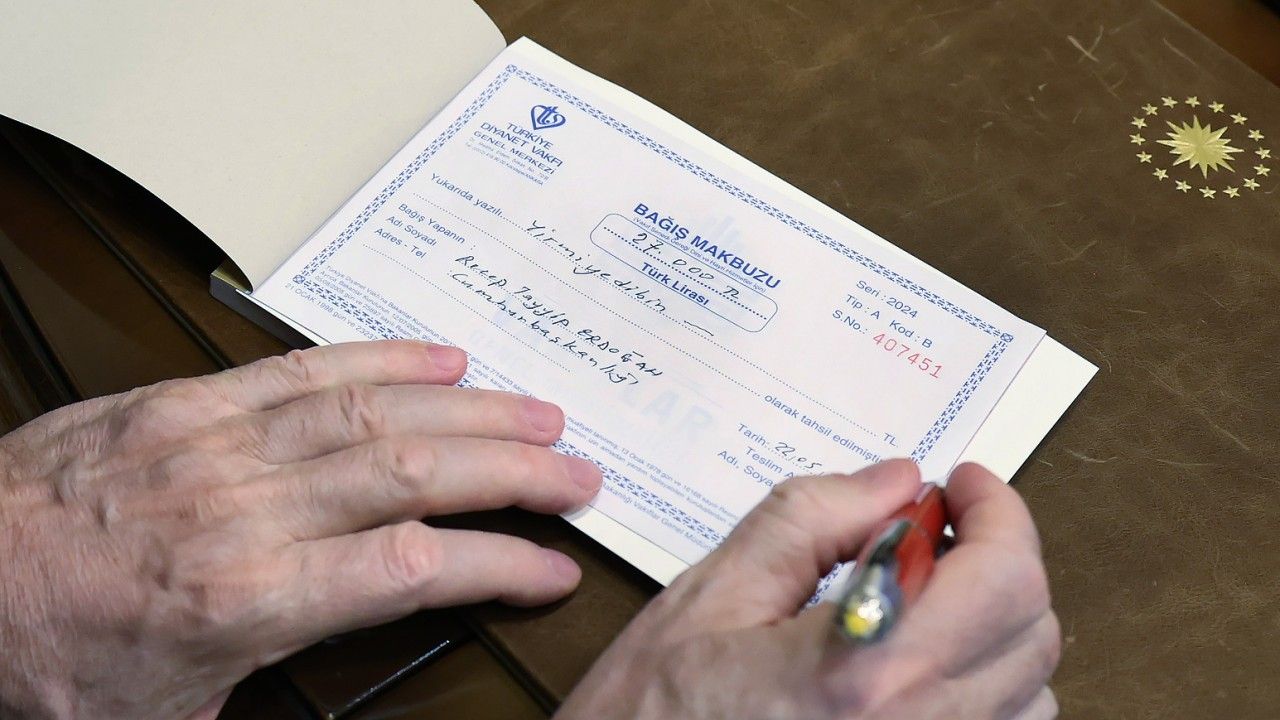 ANKARA, (DHA)- CUMHURBAŞKANI Recep Tayyip Erdoğan, Türkiye Diyanet Vakfı'na (TDV) kurban bağışında bulundu.