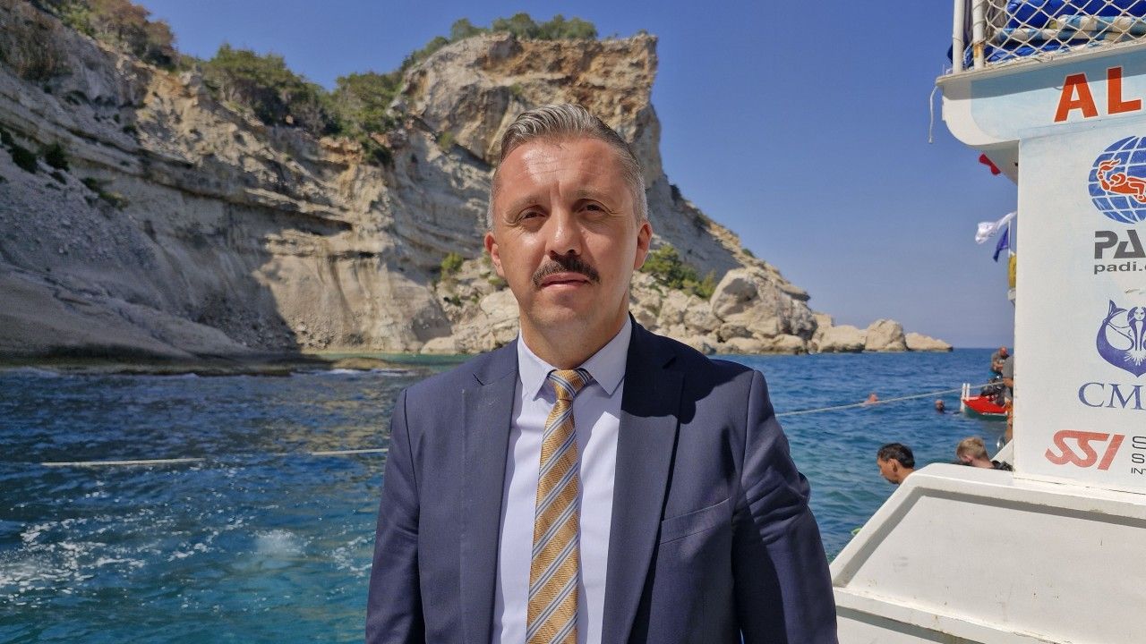Kaymakam Ahmet Solmaz, "Mayıs ayını 'Dalış Ayı' ilan etmiştik. 'Dive in May' sloganıyla başlatmış olduğumuz etkinliklerimizin bugün ikincisini gerçekleştiriyoruz. Şu anda içerisinde bulunduğumuz koyu yeni adıyla 'Sevgi Koyu' olarak adlandırıyoruz ve dalış ekiplerimizle birlikte belirlemiş olduğumuz 'Sevgi Geçidi'nden, kalbe benzer bir kayamızdan misafirlerimizle dalışlarımızı gerçekleştireceğiz. Mayısın ikinci haftasında kutlanan Anneler Günü'nü de esas alarak insanlığın en önemli duygusu olan sevginin en güzel şekilde emarelerinin gösterildiği bir ortamda ve bunu da dalış ayıyla birleştirip, mavi sular altında gerçekleştirmek için böyle bir organizasyon düzenledik" dedi. (DHA)