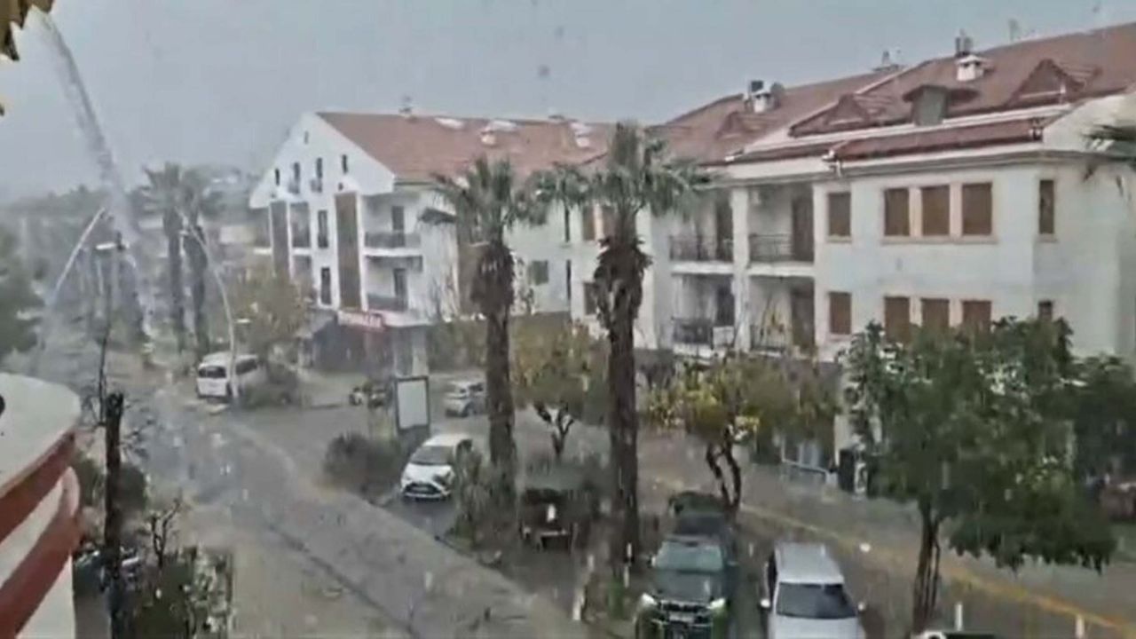 Meteoroloji 4'üncü Bölge Müdürlüğü'nün Muğla ve çevresi için yaptığı gök gürültülü şiddetli yağış (21-60 kilogram/metrekare) uyarısının ardından Datça'da fırtına ve sağanak etkili oldu. Yağışla birlikte Datça ilçe merkezi ile çevresindeki ana yollar ve bazı sokaklar suyla doldu. Belediye ekipleri, sağanağa karşı teyakkuza geçti. Göle dönen yollarda sürücüler, aracıyla ilerlemekte güçlük çekti. Öte yandan derelerden denize taşınan çamurlu su nedeniyle İskele Mahallesi Kumluk Koyu, kahverengiye döndü. (DHA)