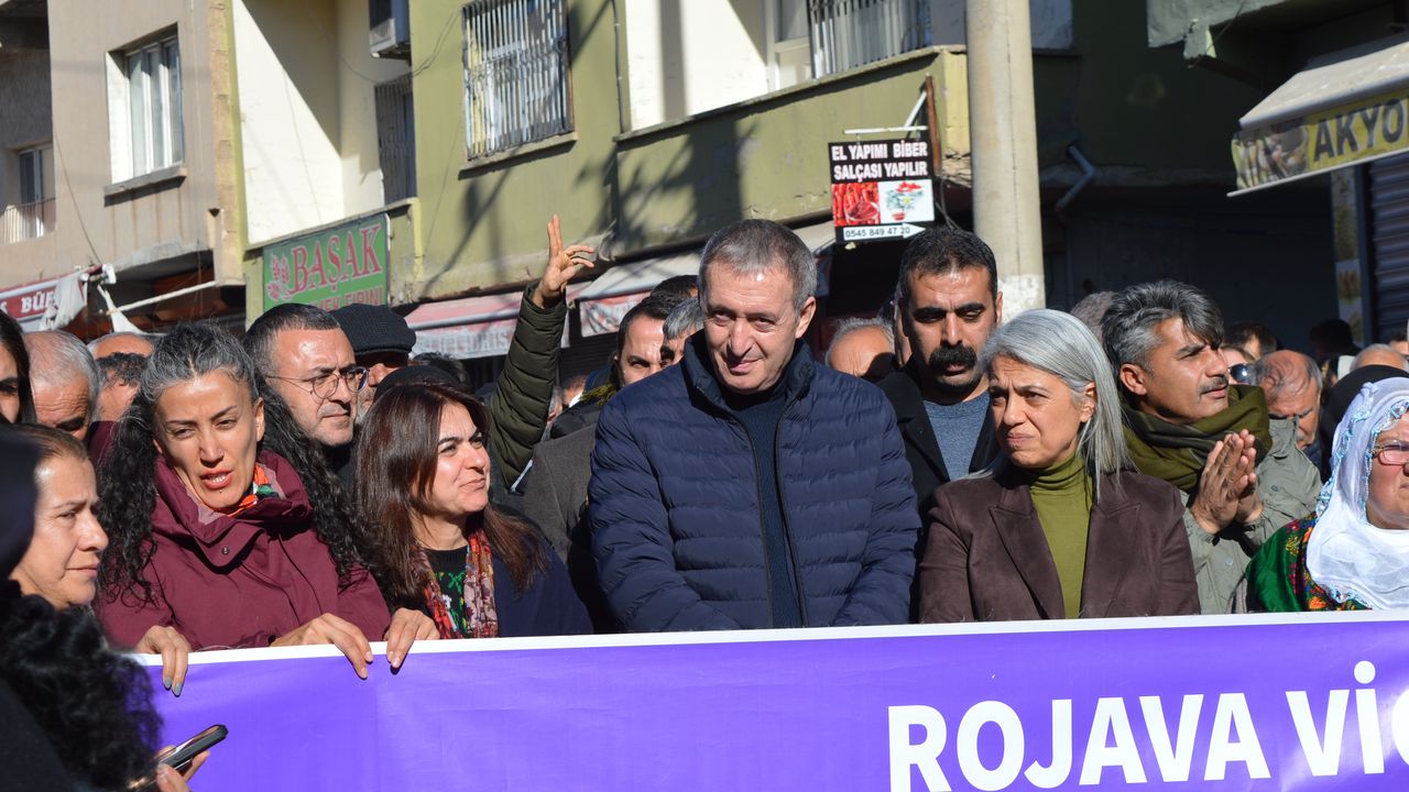 DEM Parti Eş Genel Başkanı Tuncer Bakırhan, Demokratik Bölgeler Partisi (DBP) Eş Genel Başkanı Çiğdem Kılıçgün Uçar, Diyarbakır Büyükşehir Belediye Başkanı Doğan Hatun ve bazı DEM Parti'li milletvekilleri, Suriye'de yaşanan gelişmeler nedeniyle Zeynelabidin Mahallesi'nden Kışla Mahallesi'ne yürüdü. Yürüyüş sırasında terör örgütü lehine sloganlar atıldı. Polis, sınıra yürümek isteyen gruba izin vermedi. Yürümek isteyen gruptan bazıları, gözaltına alındı.