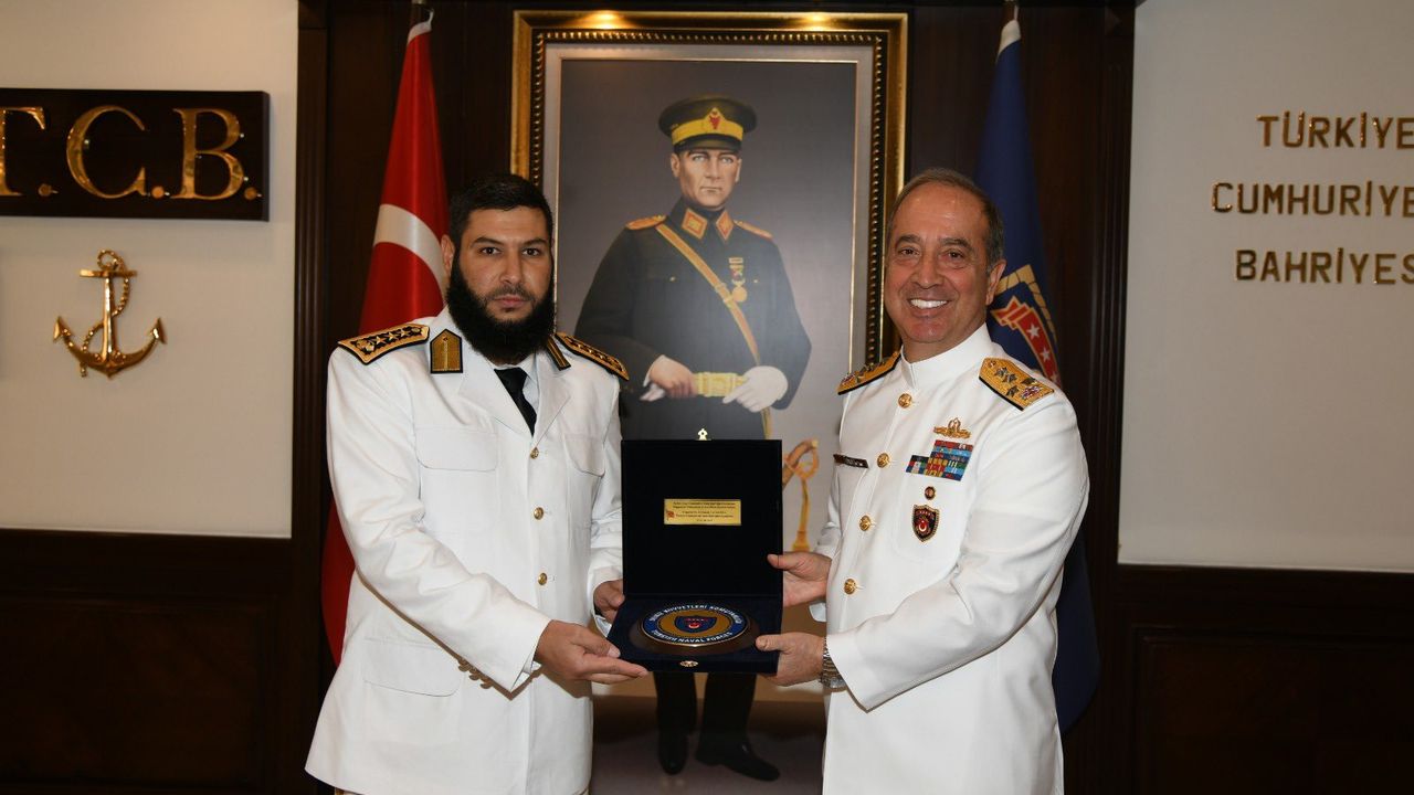 Milli Savunma Bakanlığı'nın sosyal medya hesabından yapılan açıklamada, "Suriye Deniz Kuvvetleri Komutanı Tuğgeneral Mohammed Alsaud ve beraberindeki heyet, Deniz Kuvvetleri Komutanlığımızı ziyaret ederek Deniz Kuvvetleri Komutanı Oramiral Ercüment Tatlıoğlu ile bir araya geldi" denildi.(DHA)