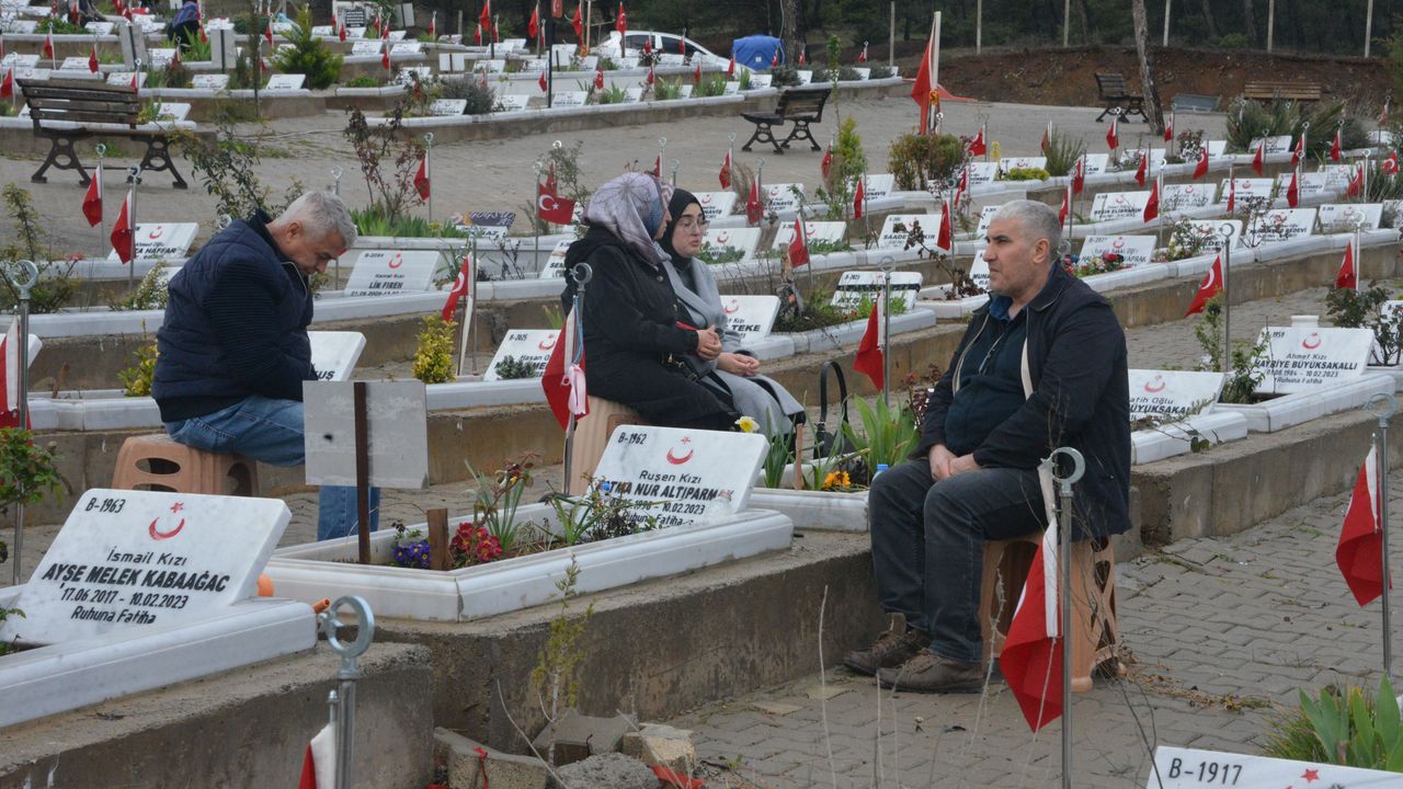 6 Şubat depremlerinin merkez üssü Kahramanmaraş'ta depremlerde yakınlarını kaybedenler, bayram namazının ardından Kapıçam Şehir Mezarlığı'nın yolunu tuttu. Kimisi çocuklarının, kimisi anne ve babasının, kimisi de eşinin mezar taşına sarıldı.