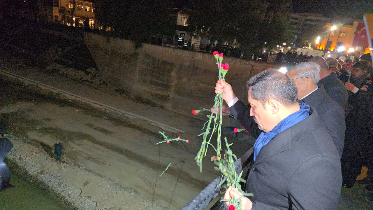 Burada yapılan duaların ardından kalabalık, Asi Nehri'ne depremde hayatını kaybedenler için karanfil bıraktı. (DHA)