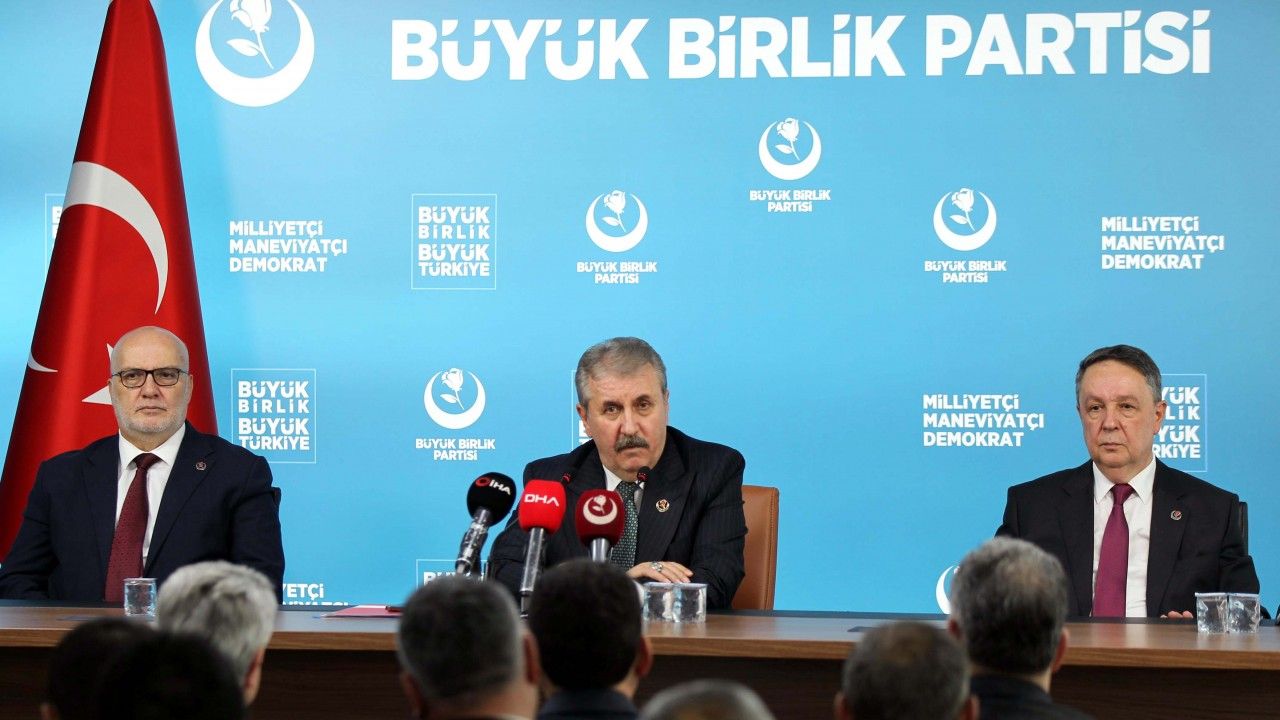 BBP Genel Başkanı Destici, parti genel merkezindeki Merkez Karar Yürütme Kurulu toplantısı öncesi basın toplantısı düzenledi. Destici, dün Cumhurbaşkanlığı Külliyesi'ndeki Milli Güvenlik Kurulu toplantısına ilişkin, "Toplantının sonrasında yapılan sekiz maddelik bir açıklama var. Bunu birinci maddesinde aynen okuyorum. PKK/KCK/PYD/YPG, FETÖ ve DEAŞ terör örgütleri başta olma üzere milli birlik ve beraberliğimiz ile bekamıza yönelik her türlü tehdit ve tehlikeye karşı yurt içinde ve yurt dışında azim, kararlılık ve başarıyla yürütülen operasyonlar ile son dönemde meydana gelen uluslararası gelişmeler hakkında kurula bilgi sunulmuş. Yani PKK/KCK/PYD/YPG, FETÖ ve DEAŞ terör örgütleri başta olma üzere, mücadele bugün de güvenlik güçlerimiz tarafından tüm hızıyla devam ediyor. Adına 'Terörsüz Türkiye' denilen, daha önce başka isimlerle adını anmıştık ilk başlarda ama nihayetinde 'Terörsüz Türkiye' hedefiyle bir süreç yürütülüyor. PKK kongresini toplayıp ve silah bırakacağını açıkladı. Ama henüz silah da bırakmadı. Kendisini de Fes- etmedi. Bu da Güvenlik Kurulu Bildirisi'nde açık ve net olarak ifade ediliyor. Yani PKK/KCK/PYD, YPG, FETÖ ve DEAŞ terör örgütleri başta olmak üzere tüm mücadelemiz sürüyor" diye konuştu.