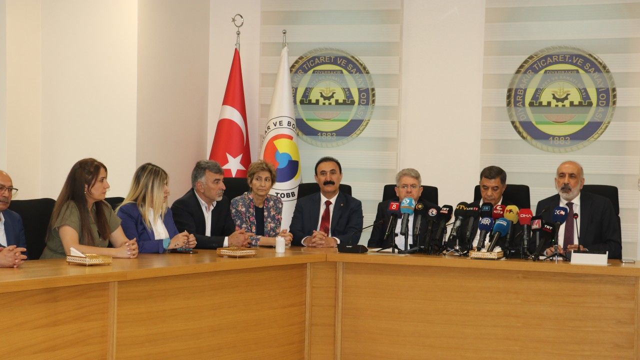 Diyarbakır Ticaret ve Sanayi Odası konferans salonunda, Doğu ve Güneydoğu Anadolu bölgelerinde faaliyet gösteren 53 oda, borsa ve ticaret ve sanayi odası ve ticaret borsaları tarafından ortak basın açıklaması düzenlendi. Basın açıklamasına, kuruluşların başkan ve temsilcileri katıldı. Toplantının açılış konuşmasını yapan Diyarbakır Ticaret ve Sanayi Odası Başkanı Mehmet Kaya, “Ülkemizde 40 yılı aşan bir süreçte çatışmalı bir sürecin olduğunu biliyoruz ve örgütün çatışmalı süreci sonlandırması ve kendini feshetmesi açıklamasıyla birlikte yeni bir süreç oluştu. Biz dönem dönem bölgedeki sivil toplum kuruluşları ile ortak veya bireysel açıklamalar yaparak bu süreci desteklediğimizi ve bu sürece her şekilde destek verip yanında, içinde olacağımız ile ilgili genel açıklamaları hem birlikte bazen de bireysel sizler aracılığıyla duyurusunu yapmıştık. Yeni süreçle birlikte sürece destek verme konusunda bizim için en önemli iş insanları için bölgede ekonominin gelişmesi, bölgenin tarihindeki gelişmişlik dönemi bölgenin önemli bir ticaret merkezi olması dönemine yeniden hızla kavuşacağına inanıyoruz” dedi.