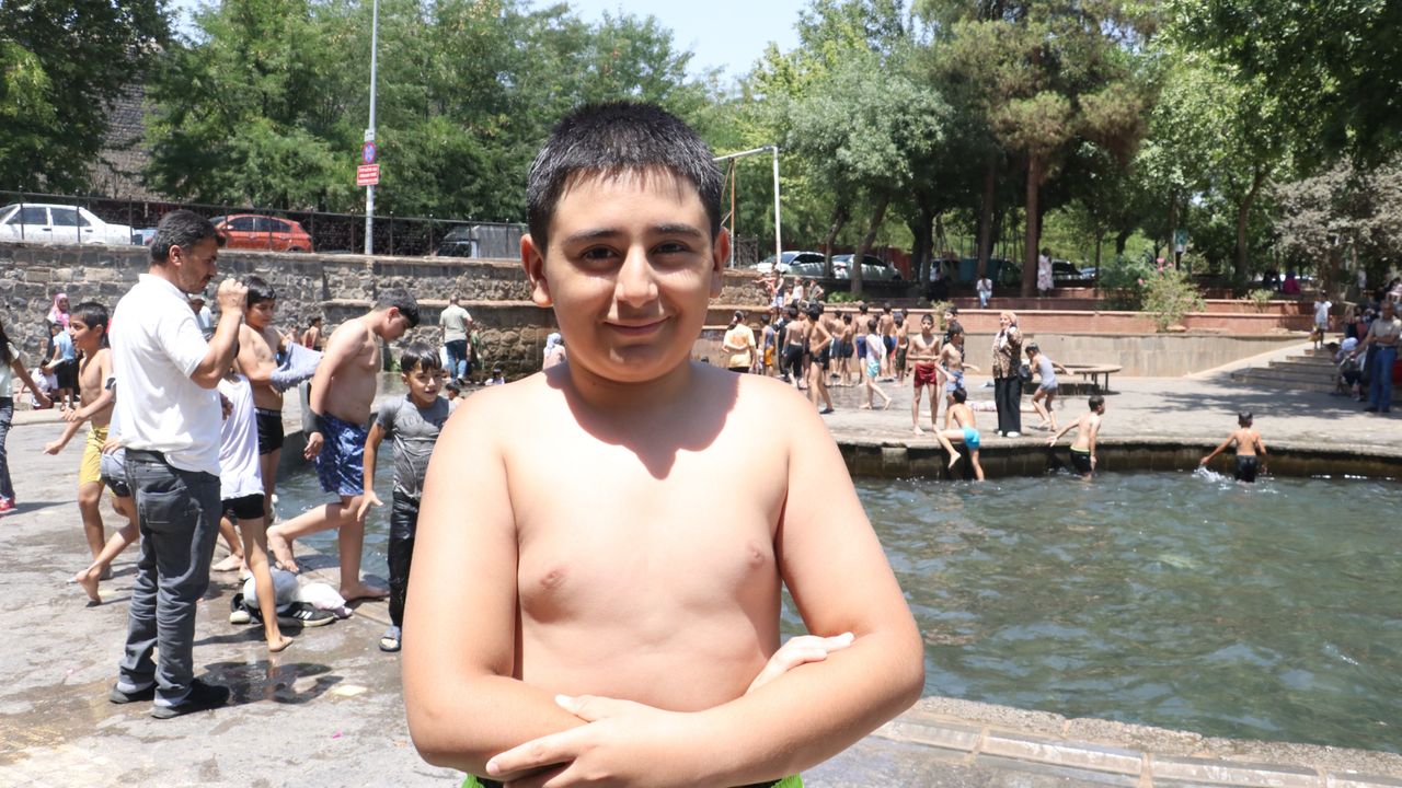 Meteoroloji 15'inci Bölge Müdürlüğü'nün 'yüksek sıcaklık' uyarısı yaptığı Diyarbakır'da termometreler, 46 dereceyi gösterdi. Cadde ve sokaklar boş kalırken, çocuklar yine Sur ilçesindeki tarihi Anzele Parkı'nın süs havuzuna akın etti. Yenişehir, Kayapınar ve Bağlar ilçelerinden gelen çocuklar, yaklaşık 1 metre derinlikteki havuza girdi.