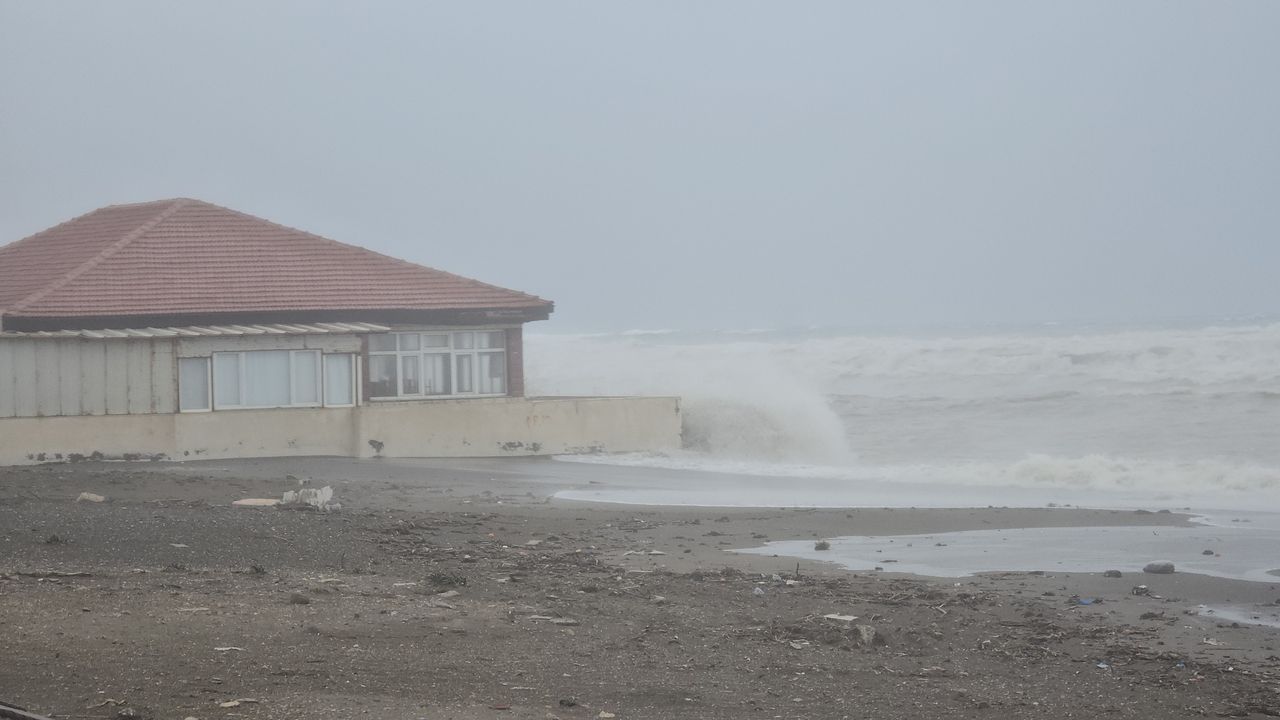Hatay'ın Samandağ ilçesinde etkili olan fırtına ve sağanak nedeniyle sahil şeridini su bastı. Belediye ekipleri, su tahliyesi için çalışma başlattı.(DHA)
