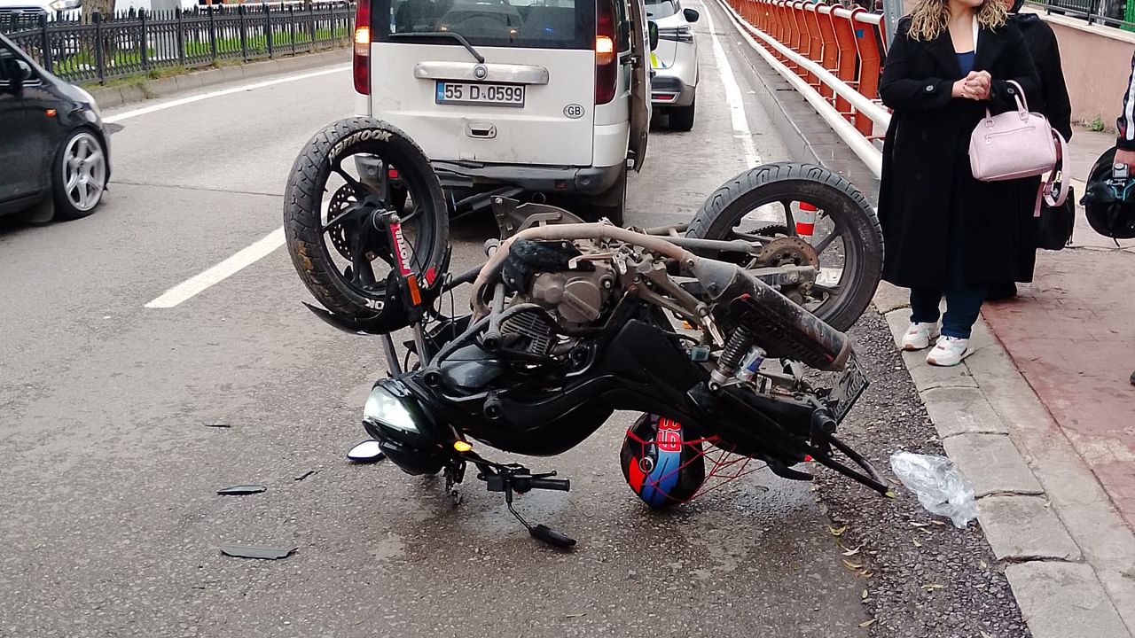 Kaza, saat 08.30 sıralarında İlkadım ilçesi Kale Mahallesi 19 Mayıs Caddesi’nde meydana geldi. Arda U.’nun kontrolündeki 55 ATG 225 plakalı motosiklet, aynı şeritte seyir halindeki Soner Ö.’nün kullandığı 55 D 0594 plakalı dolmuşa arkadan çarptı. Çarpmanın etkisiyle ters dönen motosikletin sürücüsü Arda U., yaralandı. İhbar üzerine bölgeye polis ve sağlık ekipleri sevk edildi. Yaralı, sağlık ekiplerinin müdahalesi sonrası kaldırıldığı hastanede tedaviye alındı. Polisin ilk kaza raporunda, motosiklet sürücüsüne 2918 Sayılı Karayolları Trafik Kanunu’nun ‘Önlerinde giden araçları yeterli ve güvenli bir mesafeden izlememek’ maddesinden kusurlu bulundu. Kazaya ilişkin soruşturma başlatıldı. (DHA)
