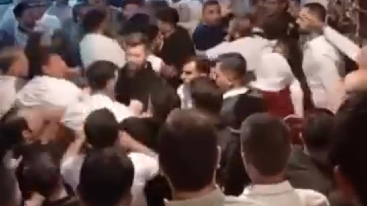Kavga anları da cep telefonu kamerası ile görüntülendi. Görüntülerde; kadınların da karıştığı kavgada İhbar üzerine salona çok sayıda polis sevk edildi. Polisin müdahalesiyle kavga sonlandırıldı. (DHA)