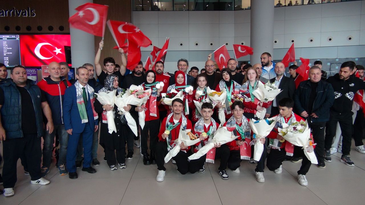 İbrahim YILDIZ/İSTANBUL, (DHA)- ÇİN’DE düzenlenen 10’ncu Dünya Kung-fu şampiyonasında toplamda 44 madalya kazanarak dünya şampiyonu olan Türkiye Wushu Milli Takımı İstanbul Havalimanı’nda Türk ve Filistin bayraklarıyla karşılandı.
