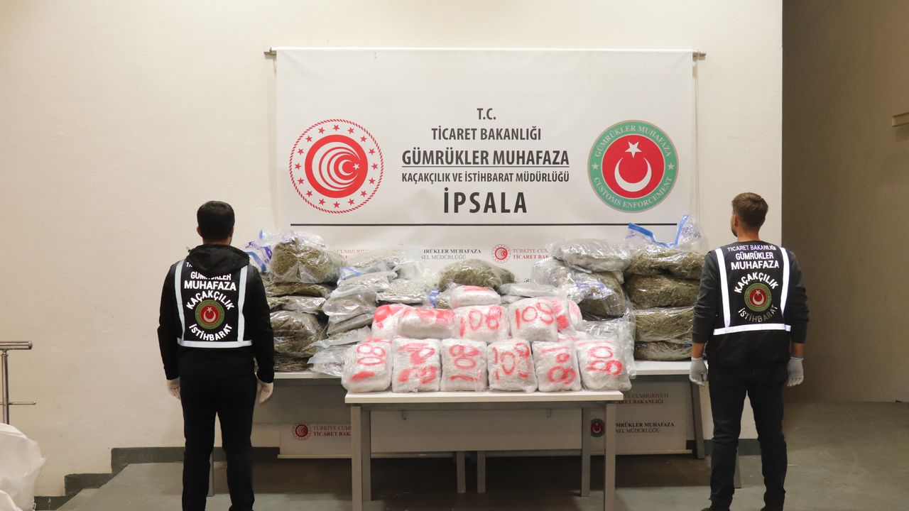 Bakanlıktan yapılan açıklamaya göre; Tekirdağ ve İpsala Gümrük Muhafaza Kaçakçılık ve İstihbarat Müdürlüğü ekiplerince, yurda giriş yapmak üzere gümrük sahalarına gelen şüpheli araçlarda gerçekleştirilen detaylı aramalar neticesinde; Tekirdağ Gümrük Sahası'nda 1 ton 153 kilo, İpsala Gümrük Kapısı'nda 173 kilo olmak üzere toplam 1 ton 326 kilo esrar ele geçirildi. Bu uyuşturucunun toplam değerinin 809 milyon TL olduğu belirlendi. Tekirdağ ve İpsala Cumhuriyet Başsavcılıkları tarafından uyuşturucu yakalamalarına ilişkin soruşturma başlatıldı. (DHA)