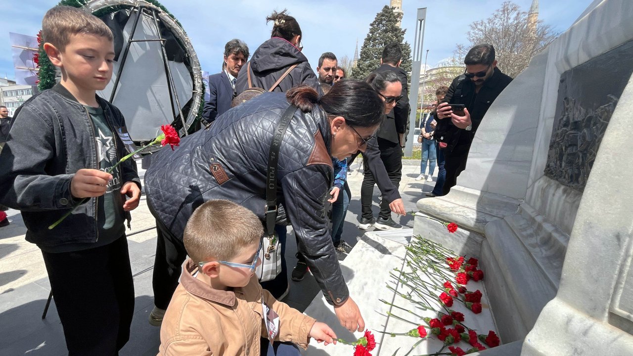 Olgay GÜLER-Batuhan SEVER/EDİRNE, (DHA)- EDİRNE'de bir araya gelen öğretmenler, Kahramanmaraş'taki okul saldırısında hayatını kaybeden 8 öğrenci ve 1 öğretmen için Atatürk Anıtı'na karanfil bıraktı.