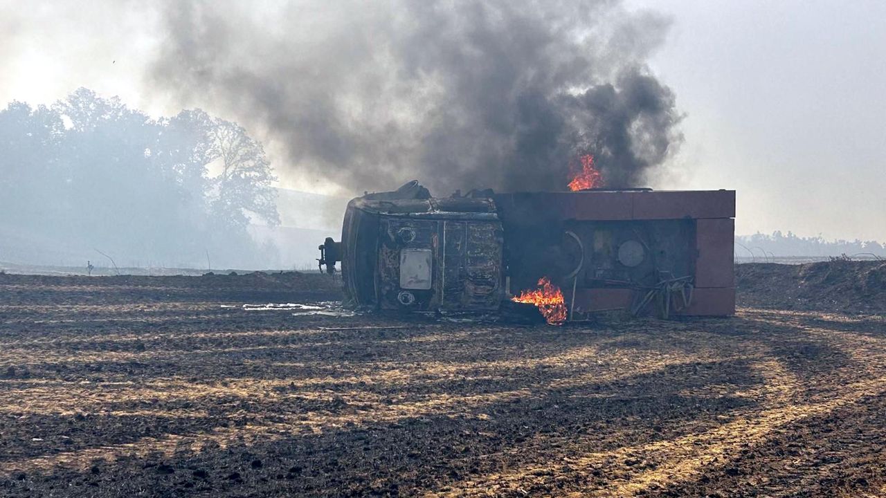 Edirne'nin Keşan ilçesine bağlı Kadıköy'ün Susamdere mevkisinde çıkan yangın kısmen kontrol altına alındı. Yangın söndürme çalışmalarına katılan Keşan İşletme Müdürlüğü'ne ait bir arazöz, arazide toprağa saplanıp devrildi. Araçta bulunan 4 personel hafif şekilde yaralandı. Yaralılar, Keşan Devlet Hastanesi'ne kaldırılarak tedavi altına alındı. Saplandığı yerden çıkarılamayan arazöz alevlerin arasında kalıp yanarak kullanılamaz hale geldi. Ekiplerin yangını tamamen kontrol altına almak için havadan ve karadan çalışmaları sürüyor. (DHA)