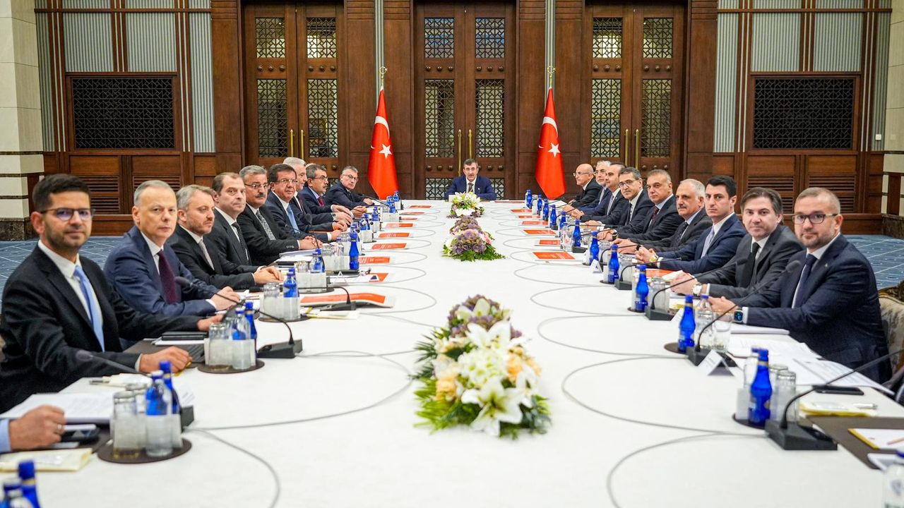 EKK, Cumhurbaşkanı Yardımcısı Cevdet Yılmaz başkanlığında Cumhurbaşkanlığı Külliyesi'nde toplandı. Toplantıya; Hazine ve Maliye Bakanı Mehmet Şimşek, Çalışma ve Sosyal Güvenlik Bakanı Vedat Işıkhan, Sanayi ve Teknoloji Bakanı Mehmet Fatih Kacır, Ticaret Bakanı Ömer Bolat, Milli Eğitim Bakanı Yusuf Tekin, AK Parti Grup Başkanı Abdullah Güler, AK Parti Genel Başkan Yardımcısı Nihat Zeybekci, Strateji ve Bütçe Başkanı İbrahim Şenel ve Türkiye Cumhuriyet Merkez Bankası (TCMB) Başkanı Fatih Karahan katıldı. Basına kapalı gerçekleştirilen ve yaklaşık 2,5 saat süren toplantının ardından yazılı açıklama yapıldı.