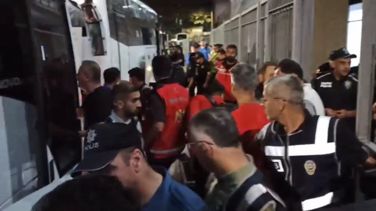 Karşılaşma sonrası Vanspor FK futbolcuları ve hakem heyeti, güvenlik önlemleri kapsamında zırhlı araçlarla stattan ayrıldı. (DHA)