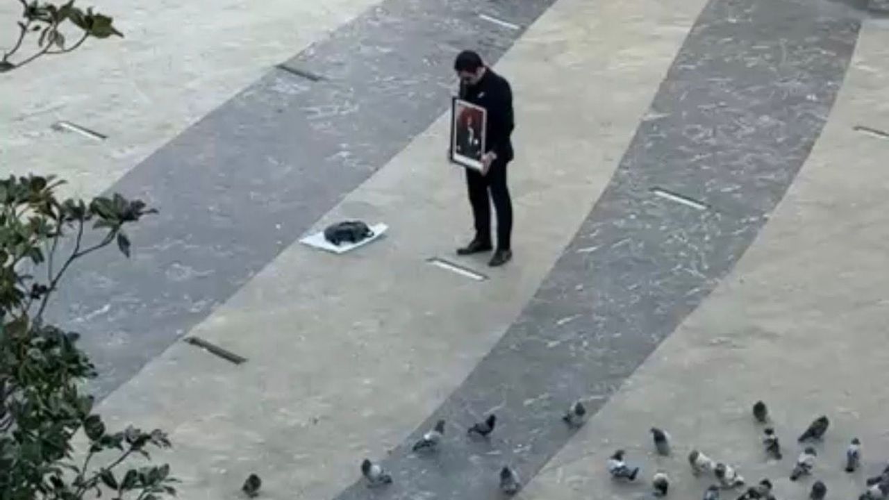 Türkiye Cumhuriyeti'nin kurucusu Gazi Mustafa Kemal Atatürk, ebediyete irtihalinin 87'nci yıl dönümünde anılıyor. Tüm Türkiye'de olduğu gibi Ordu'da da saat 09.05'te hayat durdu, vatandaşlar saygı duruşunda bulundu. Altınordu ilçesi Köprübaşı Ceren Özdemir Meydanı'nda bir vatandaş, siren sesiyle birlikte elinde tuttuğu Atatürk tablosu ile tek başına saygı duruşuna geçti. O anlar, çevredeki bir kişi tarafından cep telefonu kamerasıyla kaydedildi. Görüntüler, sosyal medyada kısa sürede yayılarak büyük beğeni topladı. (DHA)
