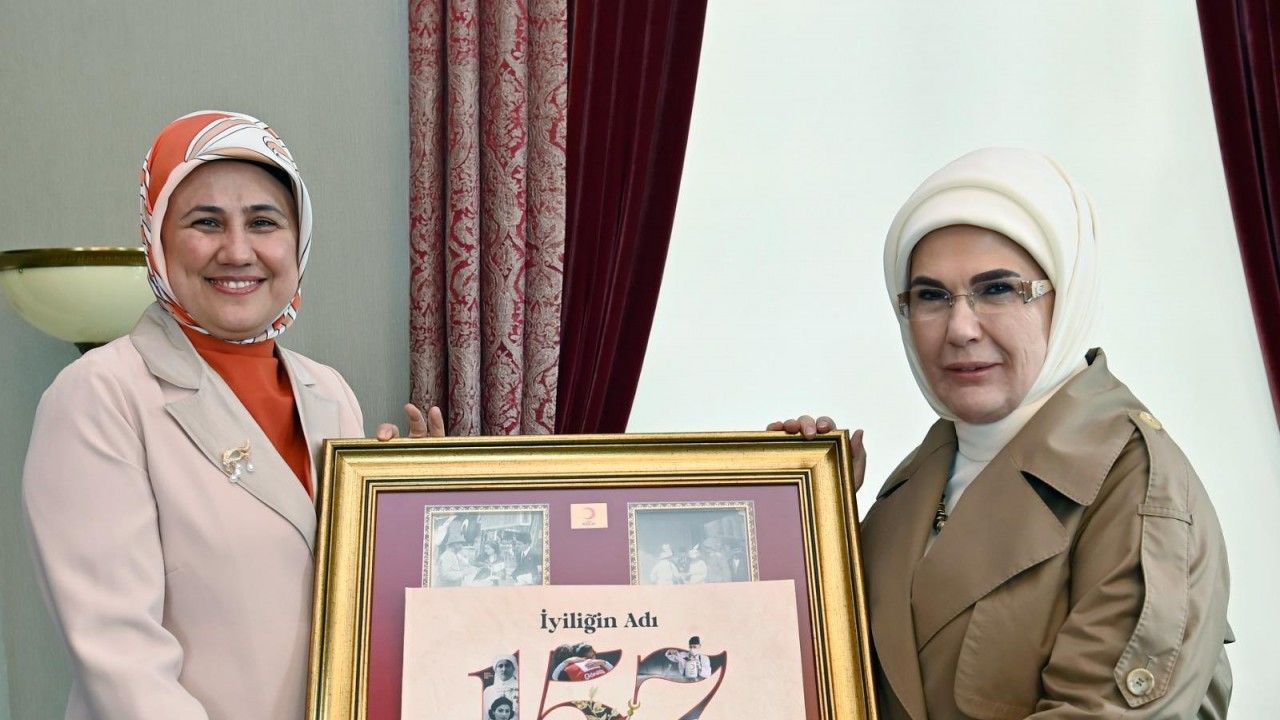 Cumhurbaşkanı Recep Tayyip Erdoğan'ın eşi Emine Erdoğan, Cumhurbaşkanlığı Külliyesi'nde Türk Kızılay Genel Başkanı Fatma Meriç Yılmaz'ı kabul etti. Cumhurbaşkanlığı kaynaklarından edinilen bilgiye göre; görüşmede, Emine Erdoğan, kurban vekaletini ihtiyaç sahiplerine ulaştırılmak üzere Türk Kızılay'a teslim etti. Türk Kızılay'ın yürüttüğü insani yardım faaliyetlerini her platformda desteklediğini belirten Erdoğan, ulusal ve uluslararası insani yardımın önemine vurgu yaparak, mazlum coğrafyalara yapılan her bir yardımın umut olmaya devam ettiğini bildirdi. Görüşmede, Türk Kızılay'ın ulusal ve uluslararası çalışmaları hakkında bilgi veren Yılmaz ise Türk Kızılay'a desteği için teşekkür ettiği Emine Erdoğan'a, günün anısına üzerinde 'Hilal-i Ahmer Çiçek Günü'nü anlatan eski zamanlara ait fotoğrafların yer aldığı tablo hediye etti. (DHA)