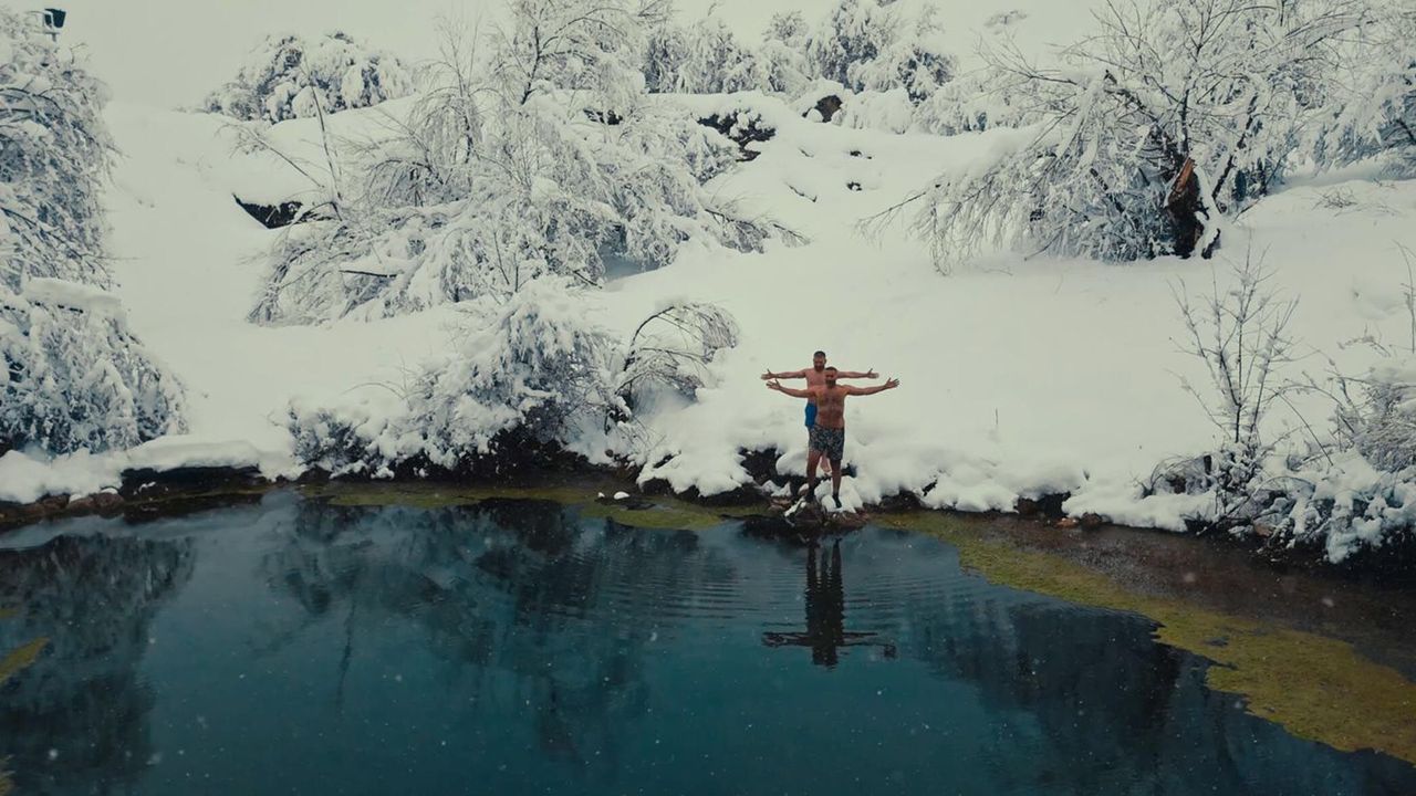Hava sıcaklığının sıfırın altında 5 dereceye düştüğü kentte, Erzincan-Kemah kara yolunun 14'üncü kilometresinde yer alan ve halk arasında mineralli yapısıyla bilinen Beytahtı Gölü'nün bazı hastalıklara iyi geldiği öne sürülüyor. Yaz aylarında serin, kış aylarında çevresine göre daha ılık olmasıyla dikkat çeken göle gezmeye giden Mengücek Gazi Eğitim ve Araştırma Hastanesi'nde görevli Kardiyoloji Uzmanı Dr. Zafer Küçüksu, fotoğrafçı Emrah Karakoç ve esnaf Cengiz Urtekin soğuk havaya aldırmadan mineralli suya girdi. Karla kaplı arazinin ortasındaki gölde yüzen grup, o anları dronla kayda aldı. (DHA)