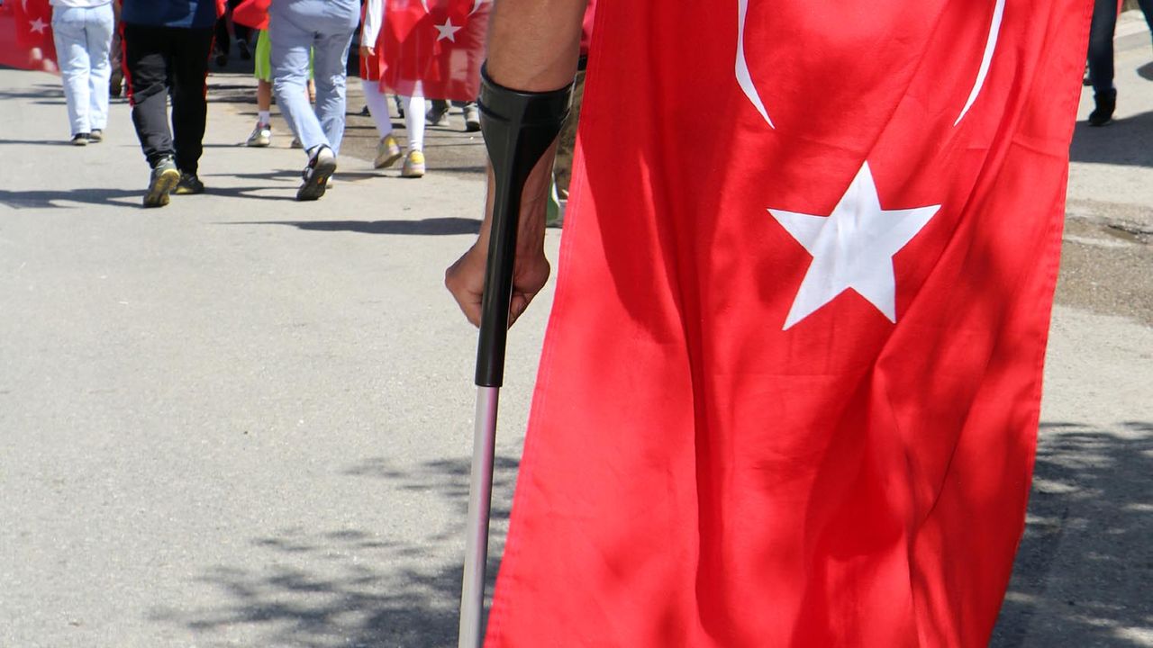 Erzurum'daki tüm bayramlara sırtında ve elinde taşıdığı Türk bayrağı ile katılan bedensel engelli Yasin Karbuz (42) protokol ve davetlilerin yaklaşık 5 kilometrelik yürüyüşünde ön safta yer aldı. Zaman zaman ayağının takılıp tökezlemesine rağmen yürüyüşteki yerini koruyan Karbuz'u görenler alkışlayarak kendisine destek verdi. Çocukluğundan itibaren her bayrama katıldığını Türkiye Cumhuriyeti temellerinin atıldığı Erzurum Kongresi'ne de her zaman eşlik ettiğini belirten Karbuz, "Yaşasın Cumhuriyet, yaşasın Mehmetçik" dedi.