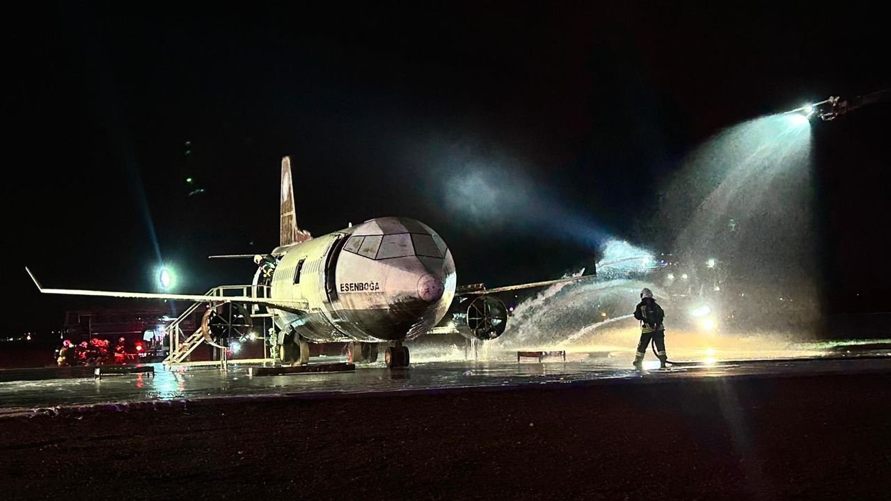 10 bin litre yakıt, 153 yolcu, 8 mürettebat ve arsenik içeren kimyasal madde kargosunun bulunduğu uçak, piste iniş yaptığı sırada motor ve iniş takımı bölgesinde yangın çıktı. Uçağın motorlarında çıkan yangın, ARFF ve Ankara Büyükşehir Belediyesi İtfaiye Daire Başkanlığı ekiplerince kimyevi toz ve köpük kullanılarak söndürüldü. AFAD ekipleri de uçakta taşınan tehlikeli maddeye müdahalede bulundu ve çevreden uzaklaştırdı. Kimyasal maddeye maruz kalan mürettebat ve yolcular, ambulanslarla hastaneye kaldırıldı. Yaklaşık 2 saat süren tatbikat başarıyla tamamlandı. (DHA)