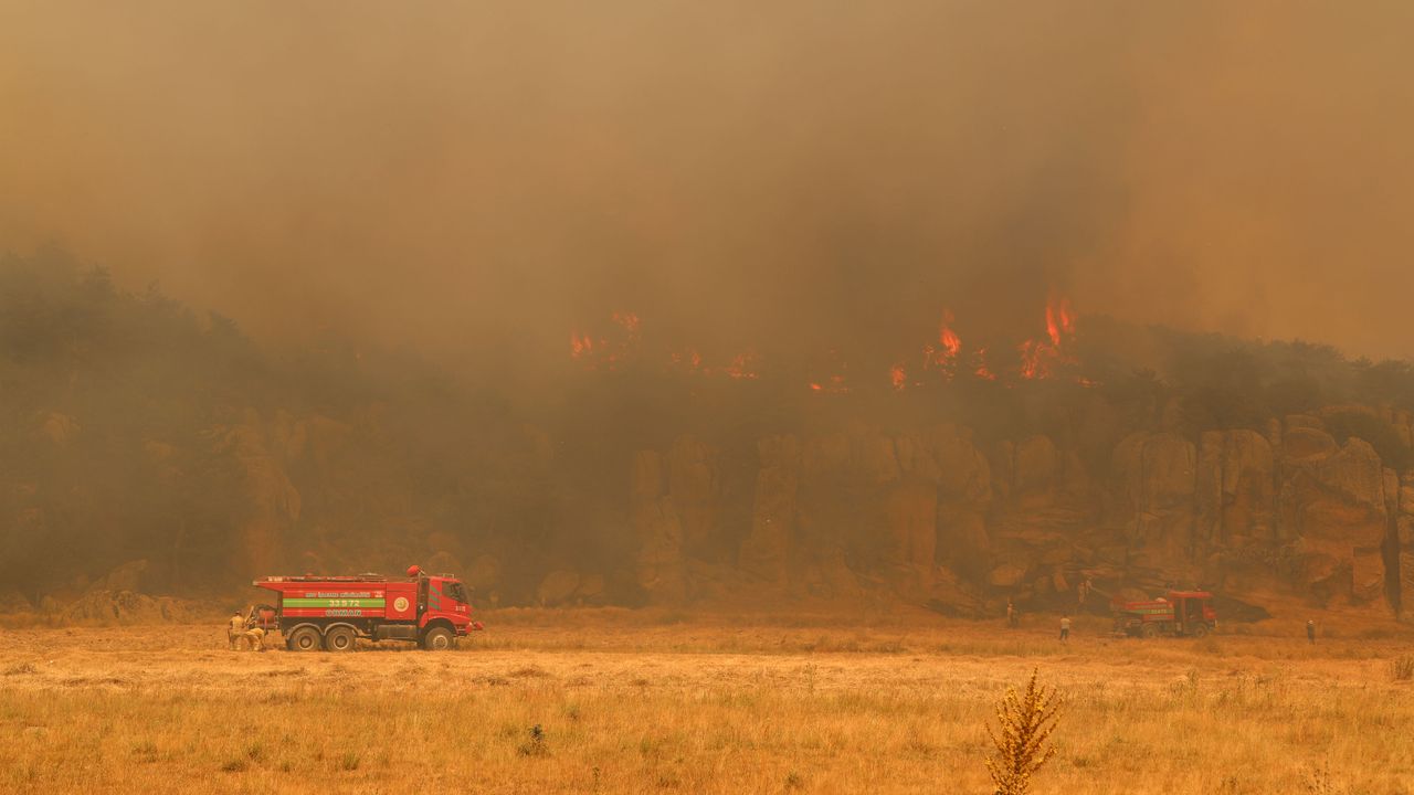 Afyonkarahisar'ın İhsaniye ilçesine bağlı Sarıcaova ile Alanlı köyleri arasındaki ormanda devam eden yangını söndürme çalışmaları sürüyor. Dağların yüksek kesimlerindeki yangına havadan müdahale edilirken, dağın yamacında da orman işçileri ve itfaiye ekipleri, arazöz ve itfaiye araçlarıyla belirli aralıklarla nöbet tutuyor. Rüzgarın etkisiyle hızla yön değiştiren alevler, yamaçtan tarım alanlarına yaklaştı. Kozalak patlaması ile tarım alanlarının da bir kısmına sıçrayan yangına ekipler hızla müdahale etti. Müdahale sırasında ekipler, yoğun duman ve rüzgar nedeniyle zaman zaman zor anlar yaşadı.