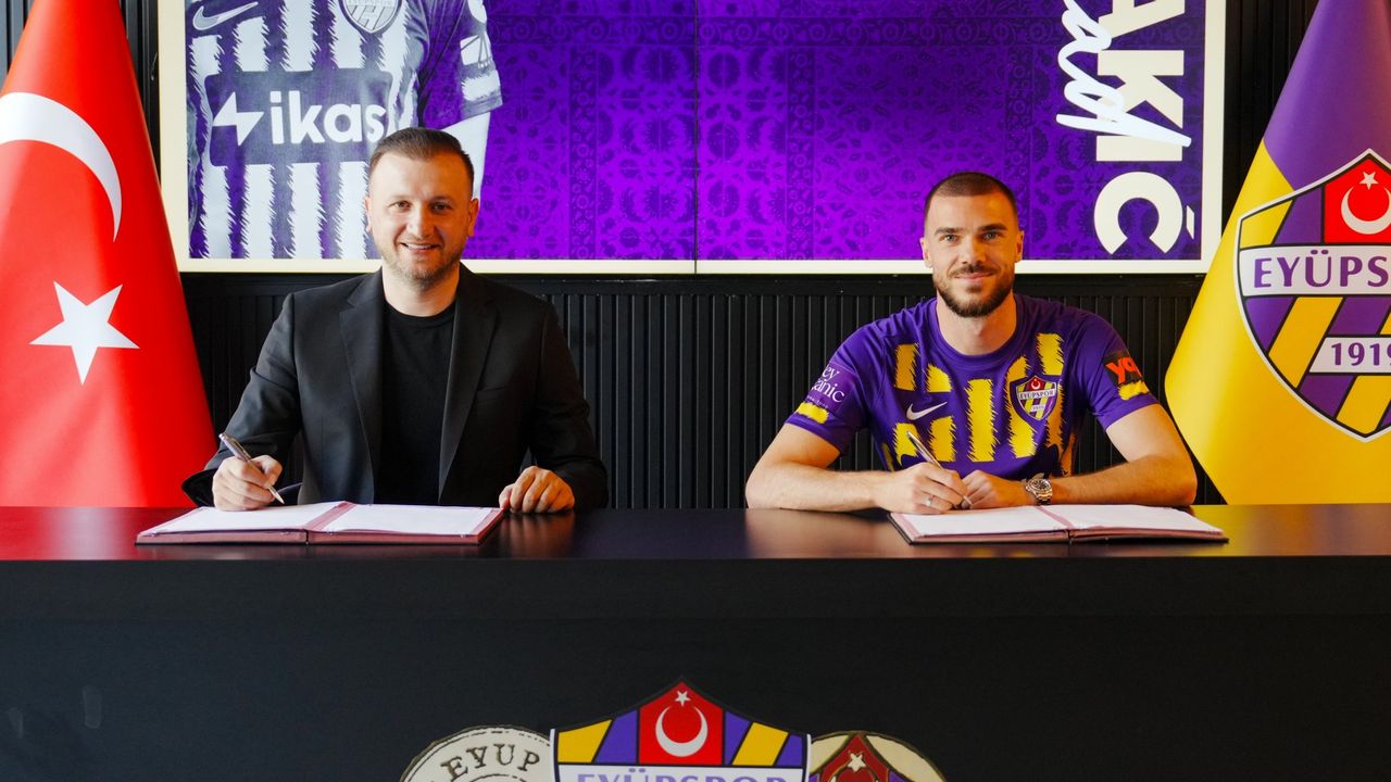 Süper Lig ekiplerinden Eyüpspor, transfer çalışmalarına hız kesmeden devam ediyor. Eflatun-sarılı ekip, son olarak Sırbistan ekibi Partizan forması giyen 27 yaşındaki Bosna Hersekli savunmacı Nihad Mujakic’i 1 yıllığına kiraladığını açıkladı. Anlaşmaya varılan 27 yaşındaki oyuncu için kulüp tesislerinde imza töreni yapıldı. Düzenlenen imza töreninde Nihad Mujakic ile Eyüpspor Asbaşkanı Fatih Kulaksız açıklamalarda bulundu.
