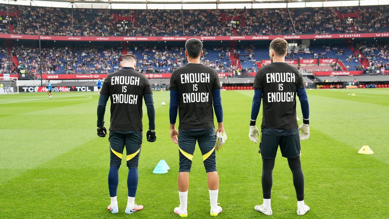 Fenerbahçeli futbolcular maç öncesi ısınmaya ‘Stop crimes aganist humanity’ yazılı siyah tişörtlerle çıktı. Sarı-lacivertli ekibin sosyal medya hesabından bu konuyla ilgili yapılan paylaşımda; “Bizler sadece forma değil, vicdan taşıyoruz. Yurt dışı maçında ısınmaya siyah tişörtlerle çıkıyoruz: “Stop crimes aganist humanity” Susmuyoruz, görmezden gelmiyoruz. İnsanlık nerede yara alıyorsa, orada duruş sergiliyoruz. Çünkü insanlık, sessiz kalınca kaybeder” ifadelerine yer verildi.