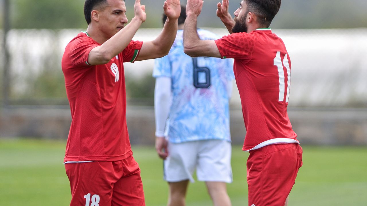 FIFA Başkanı Infantıno'nun izlediği maçta, İran Milli Takımı sahaya öldürülen çocukların fotoğraflarıyla çıktı