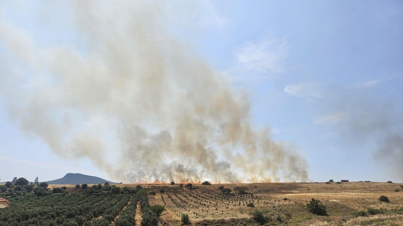 Seyfi GÜL/FOÇA (İzmir), (DHA)-İZMİR'in Foça ilçesinde otlukta çıkan yangın, maki ve zeytin ağaçlarıyla kaplı alana da sıçradı. Alevler, 2 saatlik çabayla kontrol altına alınırken, 4 hektarlık alan zarar gördü.